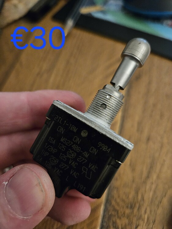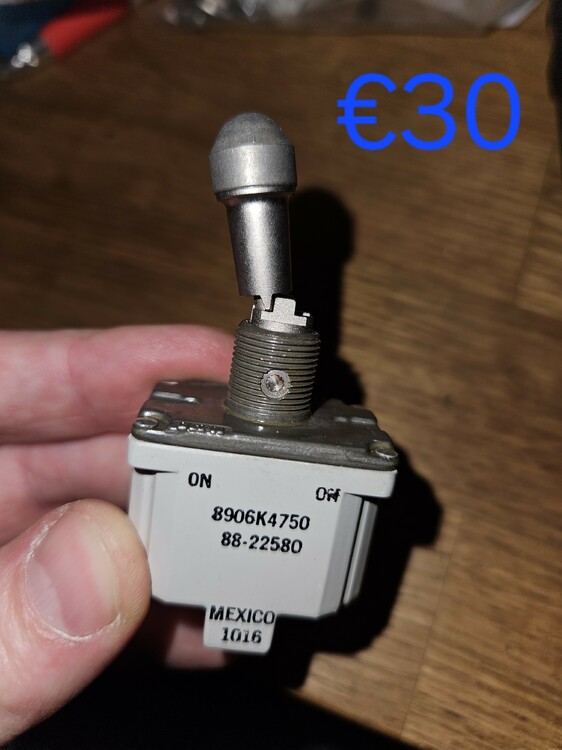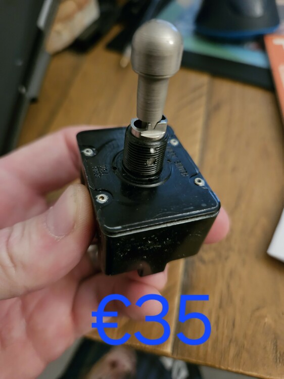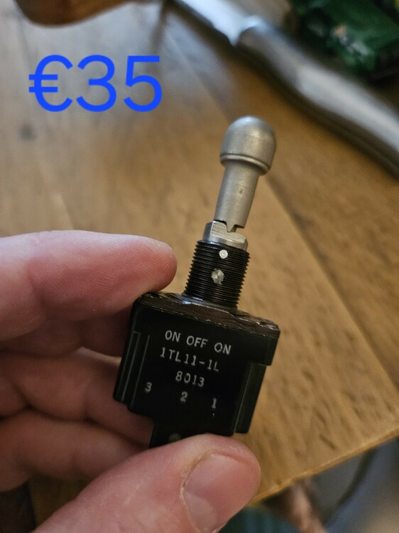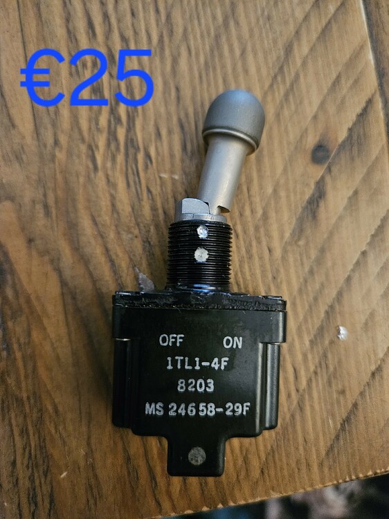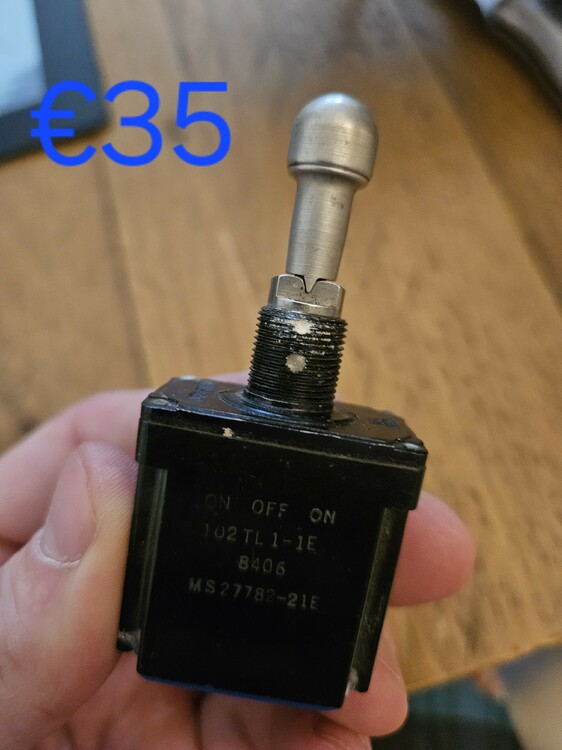 Hi guys, I've got these switches available for you cockpit builders out there. I have multiple in stock of almost all of the switches. I am located in France but visit the UK frequently so can ship from both countries to keep shipping cost down. Prices in pics are per switch and without shipping. If you buy multiple I can knock a few euros off. Paypal or bank transfer , whatever you prefer. I will update this original post when I get new stuff or have sold out. PM me for more details or if you wish to buy something. Intercom box, missing 2 switches. €10 per box 8906K3221 , Cutler-Hammer 3 position switch. Used but in usable condition. 8906K3221 , Cutler-Hammer 3 position switch. New condition Honeywell 102TL1-1E , used but in good condition. Honeywell 2 position - Same as pic below 2 position Honeywell switch. I know these are crazy expensive and not for your average sim builder. These switches are hard to find used and new are about 150 euros. Honeywell 2 position sealed switches. I have multiple 2 and 3 position switches like these in the following formats: 2 position latching 2 position momentary 1 side 3 position latching 3 position momentary on both sides €15 per switch Honeywell 1TL1-4F , 2 position momentary switch. Cutler Hammer 3 position switch. MS27409-1M .