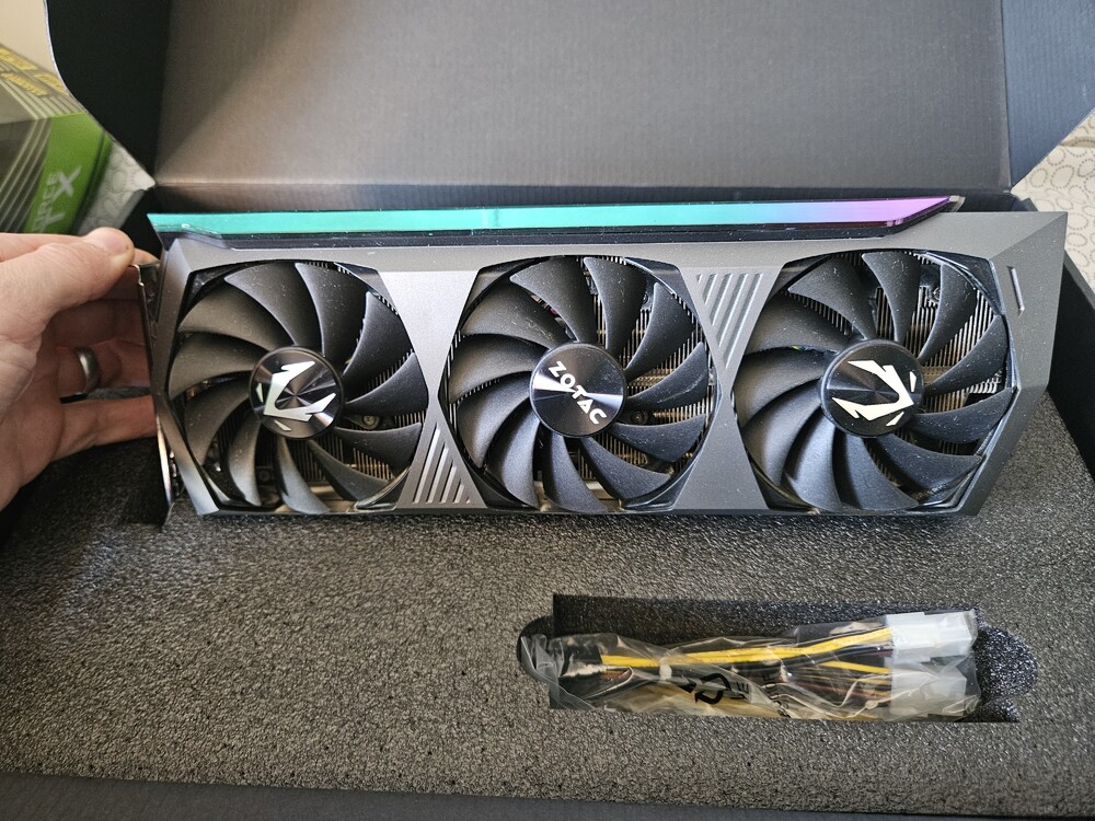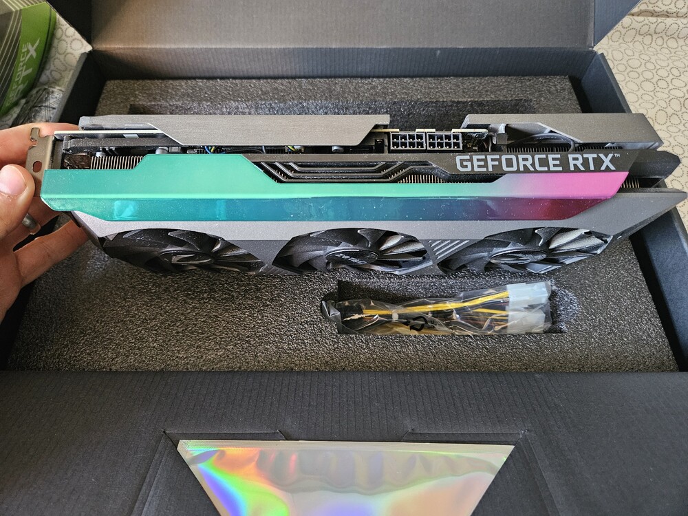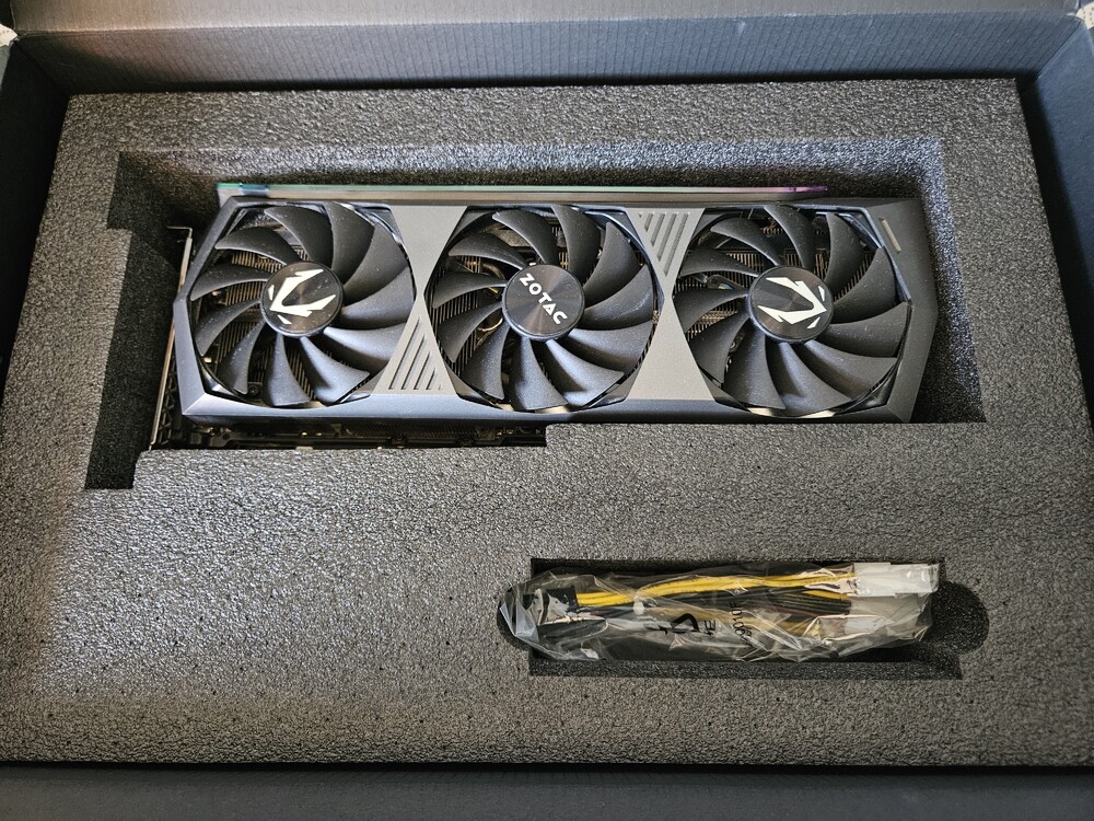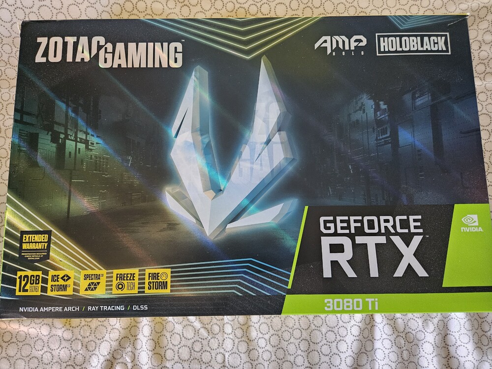 SOLD!!! Selling a ZOTAC AMP HOLO 3080TI graphics card. Bought in June 2021 for €1900 , selling for €450 plus shipping from Toulouse, France. Alternatively, I can ship from the UK to reduce costs for British buyers. Never overclocked, undervolted or used for mining. Comes with the original box with all accessories. I will be listing my 850 watt PSU soon too. Dimensions are 317.8mm x 131.8mm x 64.6mm. Specs: Processeur GraphiqueGeForce RTX 3080 Ti Cœurs CUDA10240 Mémoire Vidéo12GB GDDR6X Bus Mémoire384-bit Fréquence Processeur GraphiqueBoost: 1710 MHz Fréquence Mémoire19 Gbps PCI Express4.0 16x Sorties Vidéos3 x DisplayPort 1.4a (up to 7680x4320@60Hz) HDMI 2.1* (up to 7680x4320@60Hz) *Ultra High Speed HDMI Cable is required to support 8K/60FPS or 4K/120FPS Support HDCP2.3 Support Multi EcransQuad Display Alimentation conseillée750W Consommation350W Connecteurs d'Alimentation2 x 8-pin DirectX12 Ultimate OpenGL4.6 RefroidissementIceStorm 2.0 Largeur ( Equerre )3 slot SLINot Supported Système(s) d'Exploitation Compatible(s)Windows 10 64-bit (build 2004 or later) Longueur317.8mm x 131.8mm x 64.6mm / 12.5" x 5.2" x 2.5" Accessories2 x Dual 6-pin to 8-pin cable Manual