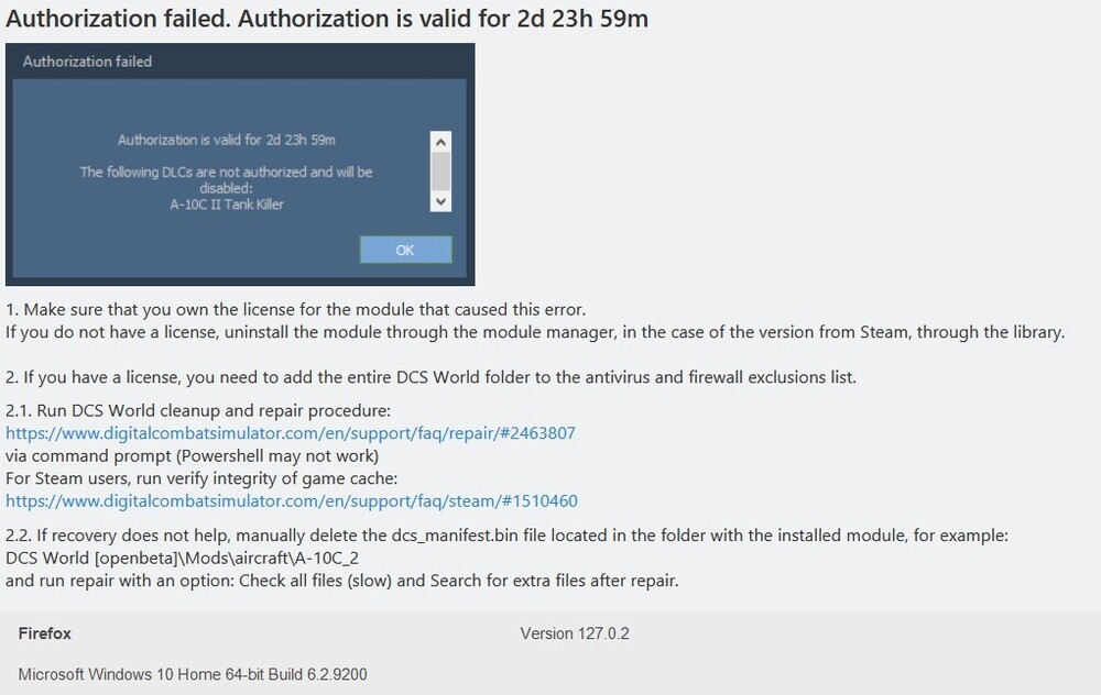 I wish I could give you an answer, but It seems I'm in the same boat. Pretty annoying, but not an emergency. I've checked the FAQ and done all suggestions. (Exclusion for DCS in AV was already there) Did the cleanup from the new launcher Did the repair form the new launcher Del'd the manifest files etc etc + Repair Very strange. Li'l help? -