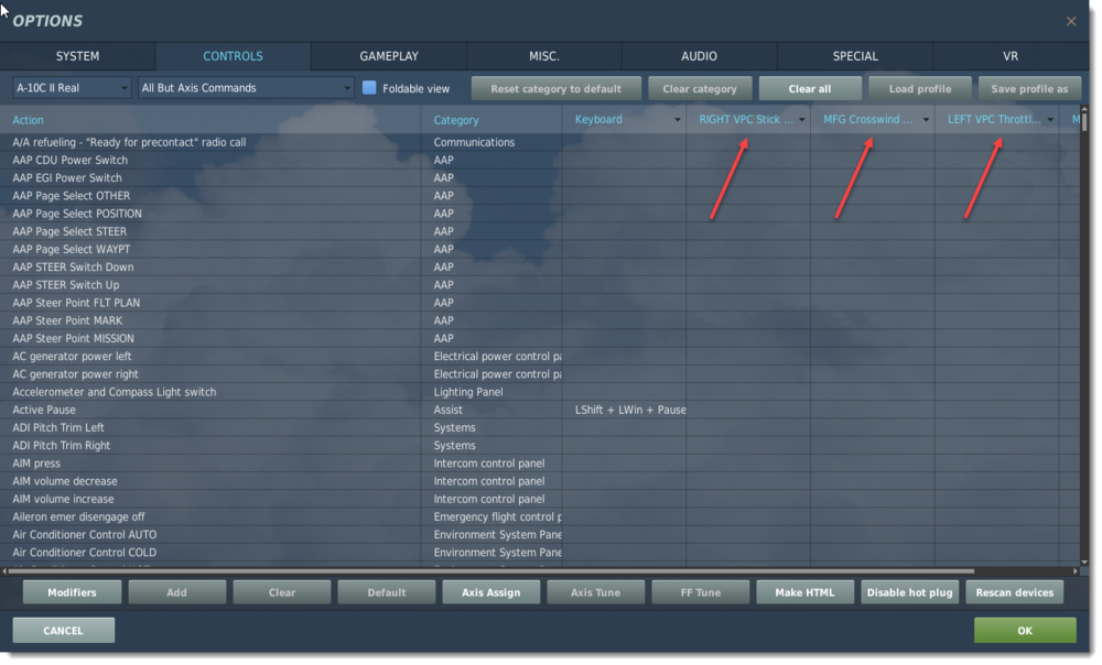 I do not know if this has been suggested, but it would be very helpful if the DCS programmers could make a couple of additions and changes to the "Options" menu. Specifically, the ability to rename the buttons on the "SYSTEM" tab currently named "Custom1, Custom2 and Custom3 and the ability to move the columns on the "CONTROLS" tab. Being able to move the user's device columns to the order of placement would be of great help.