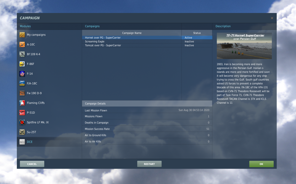 Hi Guys, Quick question? Are your ground/air kills suppose to be recorded in DCE campaigns. I just noticed after a few missions of the latest "Hornet over PG Supercarrier". They dont get recorded on the campaign page or the logbook. If this is normal, thats cool. If not what could I have done wrong? Thanks.