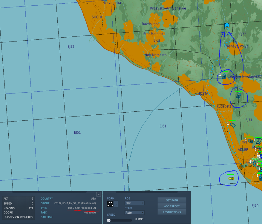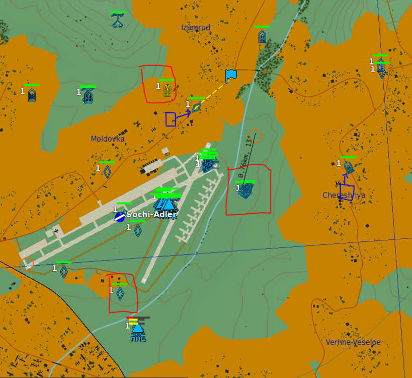14. Not sure about this but observed that certain units slung to certain positions around sochi airport cant figure out how to get back on the roads. In the image added below: RED BOXES: Units WP set on the road but dont move or fail to proceed closer to the road BLUE BOXES: Units in those positions had gotten on the road and proceeded towards the assigned waypoint. EDIT: If a unit is on the plains, setting a WP on road will result in AI ignoring it. If a unit is on the plains and you set an Offroad WP but very close to the road, the AI will follow with no issues. It is then possible to set a waypoint on the road and AI will follow If unit is offroad and on heavy inclined surface and offroad WP is set close to roads, it tries to move but gives up shortly after.
