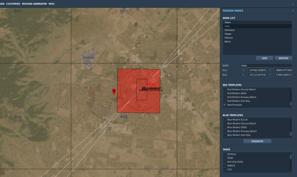 5. I'm trying to see what can be done with the nodes in the Misssion Generator. I've created a new template with a few armoured units and selected it for Hatay node but when I click on "Generate", it does not do anything <check attachment> Similarly, if I select 1 of the default red templates and none of the blue templates, it still does nothing when I click on "generate"
