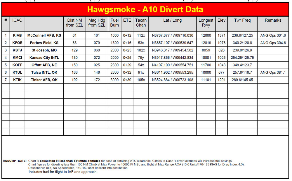 Hello ! I'd love to hear how you approach fuel calculations in a combat environment, and more specifically the minimum fuel for landing or in-flight refueling, a quantity of fuel that is closely linked to the diversion airfields you've chosen. To kick-start the discussion, here's a short article introducing the concept of diversion airfields in the context of military aviation. Enjoy your reading! Diversion Airfields for HPMA: Introduction In military aviation, safety and mission effectiveness depend heavily on having well-planned contingency options. Diversion airfields are critical elements in ensuring that HPMA (High-Performance Military Aircraft, i.e. fighter jets) have a safe haven in case their primary destination becomes unavailable. These airfields act as lifelines, particularly in dynamic operational environments where emergencies, adverse weather, or other unforeseen factors (like enemy military action) can disrupt mission plans. I'll introduce here the purpose of diversion airfields, the principles of fuel planning, and the additional considerations that ensure mission success, before a next article that will apply it to the Afghan case. Diversion Airfields: Purpose and Selection Diversion airfields are carefully chosen to meet the operational demands of HPMA. These selections are based on factors such as proximity to the mission area, runway capabilities, support infrastructure, and overall security. For military jets, runway length is a paramount consideration, as the runway must accommodate the high speeds and potential heavy payloads upon landing. The availability of military-grade fuel, maintenance services, and munitions handling facilities further influence the choice of suitable diversion airfields. In high-threat zones, security becomes an equally important factor. Diversion airfields in such areas must be secure from enemy activity and equipped with defensive measures to protect personnel and assets. AIP page for Kabul International Airfield stating that military grade F-34 fuel is available: it's a suitable diversion option in terms of fuel. Another crucial aspect of diversion airfield planning is the strategic placement of at least two suitable options near the primary recovery base. This ensures operational flexibility and contingency coverage, as the fuel requirements upon arrival at the primary airfield depend not only on its weather conditions but also on the conditions at these alternate diversion sites. This approach mitigates risks and enhances overall mission safety. However, since alternate airfields choice is a risk management decision, the rules can be changed depending on the actual operational situation by a commander with the sufficient level of authority. For example, we can imagine that reducing the alternates option to a single airfield can be decided, or even to no alternate options, for carrier operations at large for example (also called "blue water ops"). Fuel Planning and Minimum Reserves Given their high instantaneous fuel consumption, fuel planning for military jets needs to be a meticulous process that balances operational requirements with safety. The calculation begins with estimating cruise fuel burn, which is the amount needed to reach the diversion airfield under normal cruise conditions. Reserve fuel is then added to account for potential deviations, holding patterns, or emergencies. These reserves are critical, as they allow pilots to execute specific procedures after reaching the diversion airfield. National regulations often dictate the specific procedures enabled by minimum fuel reserves. For example, in France, the minimum fuel for VMC/day operations ensures the ability to perform a go-around procedure followed by 10 minutes of low-level navigation before bailout. For IMC/night operations, the reserves account for a go-around, a second IMC procedure, another go-around, and an immediate bailout. In contrast, civilian aviation adheres to stricter fuel reserve rules, such as carrying enough fuel to reach an alternate airport plus 45 minutes of holding time. While effective for commercial airliners, this approach is totally impractical for high-performance military aircraft. Following such rules would leave combat aircraft with virtually no fuel for combat operations. Instead, military fuel planning emphasizes adaptability, incorporating real-time mission demands and environmental conditions. Note that additional fuel reserves are often allocated to account for local circumstances. For example, operations may require extended holding times due to heavy air traffic or regular runway closures. For example, in Afghanistan these closures could result from routine inspections, such as those conducted after mortar attacks on airfields. By anticipating these factors, mission planners ensure that pilots have the fuel needed to navigate complex and unpredictable scenarios. Military personnel taking cover in a bunker during a rocket attack at Kandahar airbase. Essential Diversion Data for Mission Planning The effective use of diversion airfields relies on having accurate and comprehensive data. Inflight guides and mission planning tools need to be created in order to provide essential information to ensure safe and efficient in-flight decision-making. Key data points include: Relative Location: information on range and heading to diversion airfields helps pilots quickly assess options. For example, Creech AFB is located 36 NM from Nellis AFB on a heading of 290°, while Edwards AFB is 160 NM away at 225° (see picture below). Runway Dimensions: runway length and orientation are critical for landing and takeoff. Diversion airfields like Edwards AFB offer long runways (15,000 feet), while others like Creech AFB provide shorter options (9,000 feet) suitable for day/VFR conditions . Navigation Aids (NAVAIDs): TACAN or VOR frequencies allow for precise navigation. For instance, Creech AFB operates on TACAN Channel 87 (INS), while Edwards AFB uses C