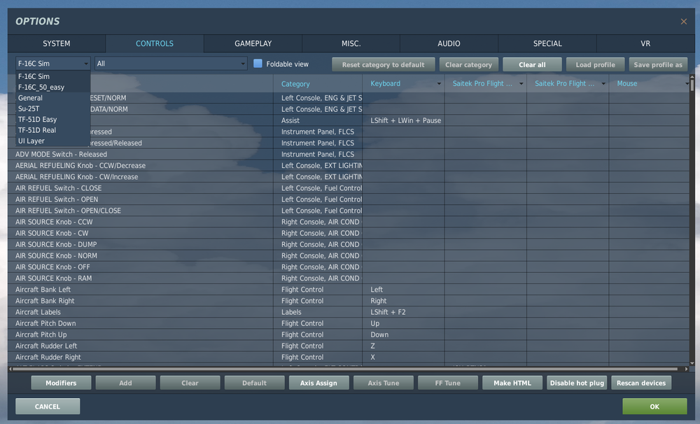 Hi, Started playing DCS in VR some weeks ago and I'm having a blast. Bought the F-16 immediately and started the learning courses designed for it. However, I'm having issues with my controls when flying missions as they only allow me to use the F-16C_50_easy controls / version of the jet. I rather enjoy the more complex and detailed controls of the F-16C Sim version. This leads to my question; is it possible to have the full simulator controls for a mission flight, or is gameplay in mission mode limited to a simplified set of rules (/controls)? I guess the same question applies to multiplayer when I eventually embark on that adventure. Appreciate all feedback!