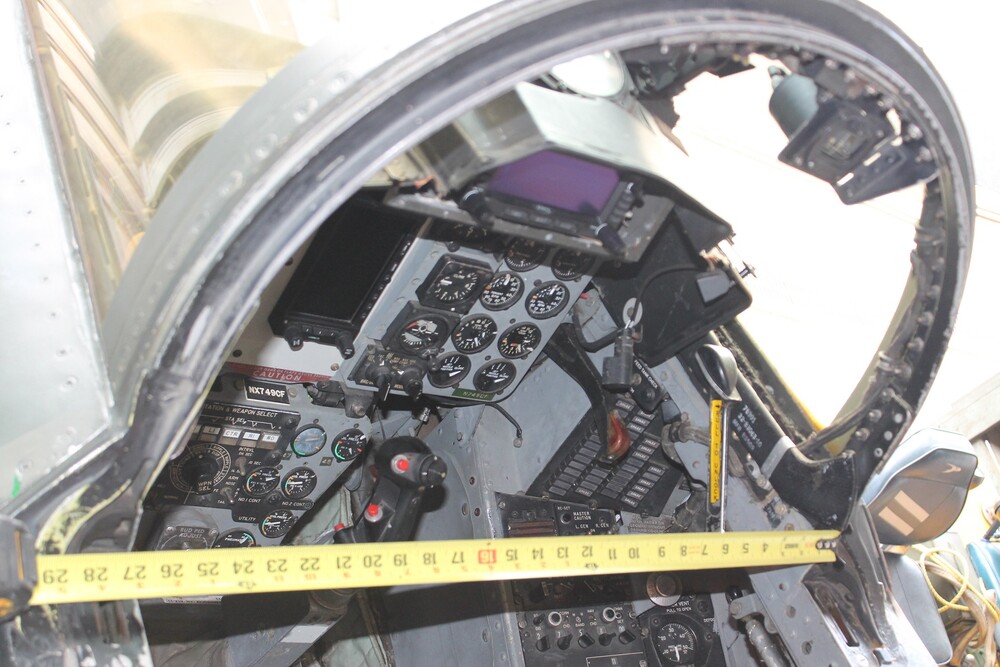1. I had some requests from some sim pit builders who've commented on my Youtube channel, asking for dimensions and measurements on the F-4 Phantom that I get to help maintain. I have yet to find any dimensional drawings in our Tech Manual library, and I've not been able to source any documentation or drawings online. So this past Saturday I got out a tape measure and a notepad and just started measuring. The ejection seats have been taken out, giving me a better opportunity to get good measurements. Below are measurements from the front cockpit, plus photos for those who want to extrapolate other measurements. The first post will be for the cockpit only. The second post will be measurements from a real Martin Baker Mk 7 ejection seat, U.S. Air Force version. If there is interest in the rear cockpit I will get those measurements too. If there are other measurements or photos that I could get, please ask below. All measurements are in inches. Canopy: Canopy Bow width (inside arch) - 26 1/2" Canopy Bow height - 18" Canopy Rail length - 40" Canopy Rail height to floor (forward edge) - 29 1/2" Canopy Rail height to floor (aft edge) - 35" Instrument Panel Floor to bottom edge of instrument panel - 18" Floor to top edge of glare shield - 39" Aft wall to instrument panel - 43 1/2" (this varies as the aft wall is canted vertically to the rear) Bottom edge of instrument panel to highest upper corner - 15 1/2" Altimeter gauge width - 3 1/2" VSI gauge width - 2 3/8" Round engine gauge diameter - 2" Consoles: Center console width (top edge) - 10 3/4" Master caution and warning panel height (tallest edge) - 7 1/2" Side console width, forward end - 11" Side console width, aft end - 14 1/2" Side console height, forward inboard - 16" Side console height, forward outboard - 18" Side console height, aft inboard - 11 1/4" Side console height, aft outboard - 14" (approximate, was hard to get a good read with this one) Width between left and right console - 22 3/4" Controls: Stick height (floor to top of stick) - 25 1/2" Throttle handle height (in full aft position) - 5 3/4" Throttle handle width, combined (left and right, excluding switches) - 4 3/4" Throttle handle width, single (excludes switches) 2 1/8" Emergency brake pull handle, L x W - 3" x 1/2" Drag Chute handle length - 8 1/2"