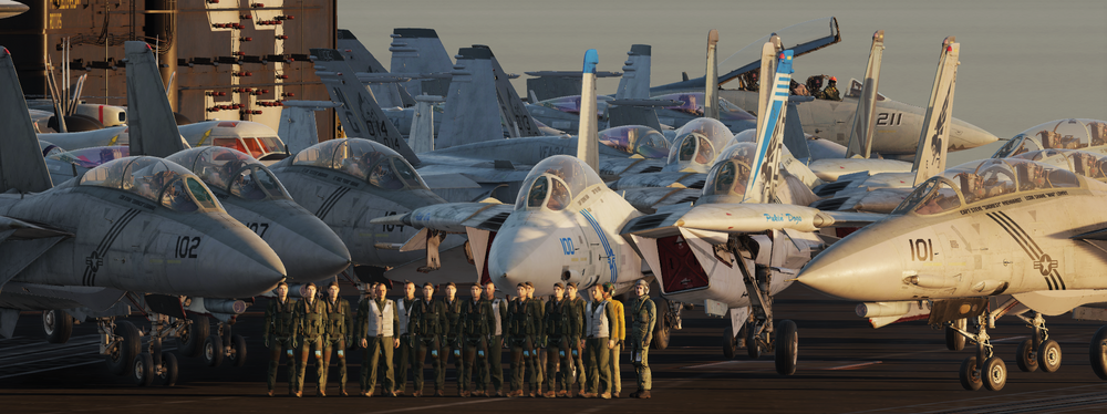 Hi all, I am recruiting pilots and RIOs for my F-14B squadron. If you're interested in participating in 30+ jet operations, regular training, building friendships, and sharing a love for the mighty Tomcat, you might want to join us! Flying the Tomcat is a challenge to your airmanship, but it's also a thrilling experience that we'd love to share together. Currently, we have 6 real-life pilots in our sqn. We've developed mixed airframe tactics with our sister Hornet squadron, VFA-97, and we share CVW-73 together as a carrier air wing, we have a pretty chill but focus vibe, I think you will like it. If you are unsure, feel free to book a trial fam flight with us to see if you like our vibe. Squadron Name: VF-143 under vTF-77 Time zone/OPS: Primarily US-based, training time is 2000 PST (GMT-8) every Tuesday and Thursday. Minimum age: 18 Realism Rating: 3/5 (casual milsim) Roles Needed: F-14B pilots and RIOs Requirements: SRS (mandatory) HOTAS for pilots VR/Head tracking device Ownership of the Syria, Persian Gulf, Sinai, and Supercarrier modules, as well as your dedicated primary aircraft. (It's okay if you don’t have all of the maps at the beginning.) Notes: vTF-77 has nearly 300 members and 8 squadrons, including professional AWACS and aggressor squadrons, operating different airframes and missions. VF-143 primarily provides CAP capabilities to assist other squadrons from various branches during missions. Typically, 30+ aircraft will be involved. If available, we also participate in strike missions. VF-143 is a structured squadron with a casual vibe but a focused mindset. We have some real pilots in the group across different squadrons, and we share knowledge together. If you're looking for fun and intense tactical moments flying the Tomcat, come join us! See you on the flight deck! Squadron website: https://www.vtf77.com/ , discord: https://discord.gg/vtf77 If the link to our Discord isn't working, please feel free to send me a DM! When you join, you'll be in the lobby, and our staff will be there to assist you.
