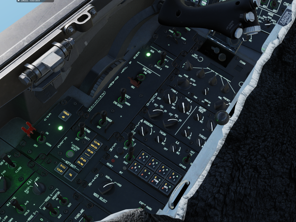 For realism and immersion, it would be nice to have the remaining unclickable switches (i.e. AVTR Selector, Video Recorder Switch, Nuclear Consent and Harness Lock Lever) animated and completed with sounds. It would also be coherent with the choice of animating other non-functional switches (e.g. AB MAX, TFR ADV etc.) in the Viper, plus their equivalent is already animated in the Hornet despite being purely cosmetic and not needed for aircraft operation. The ECM control switches are clearly not included in this list as they will be implemented alongside jammer pods.