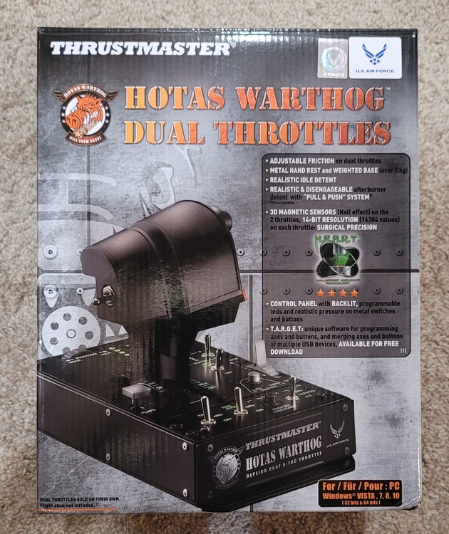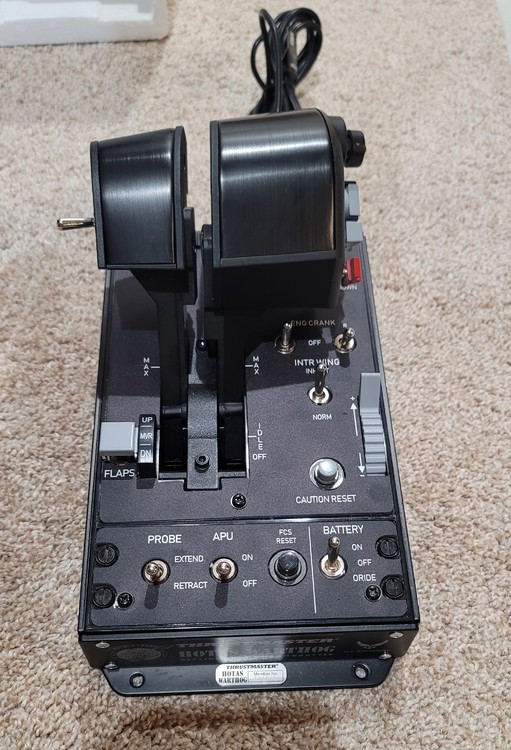 SOLD Thrustmaster HOTAS Warthog Dual Throttle Like New Played it for about 7 months then bought a Winwing Super Taurus. Includes... Delta Simulations TDC mod installed (Delta Sim TDC) F/A-18 Hornet overlay (original included in box) "Push-through" afterburner insert installed (you do not have to lift the throttles to go into afterburner) Original insert 2 nylon 3D printed "push-through" inserts In original packaging. null