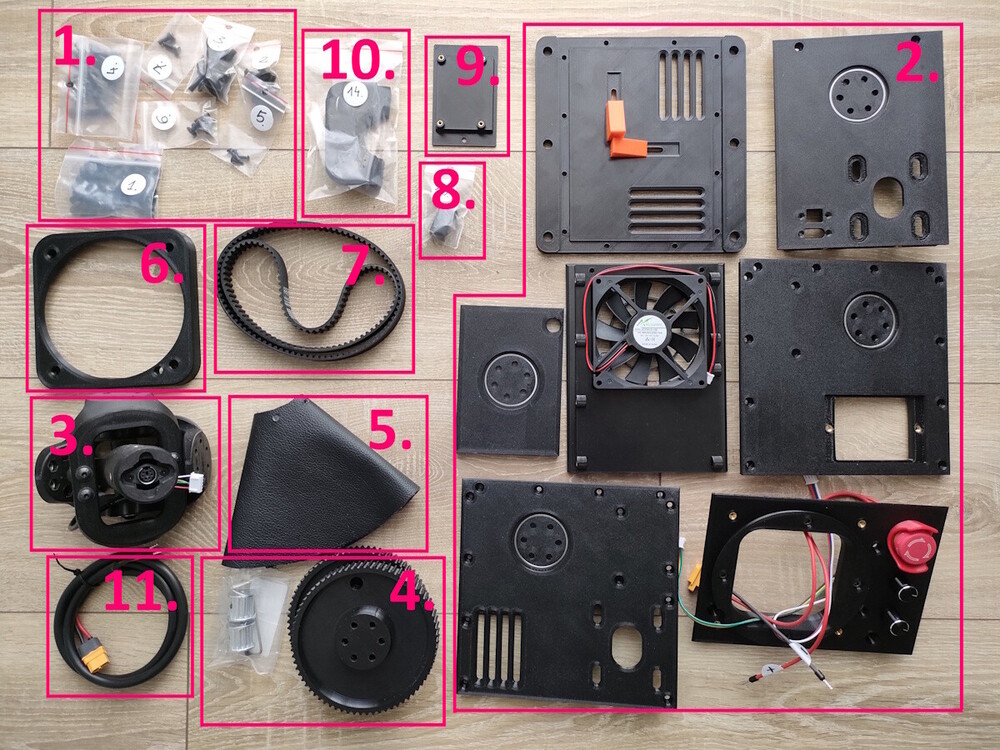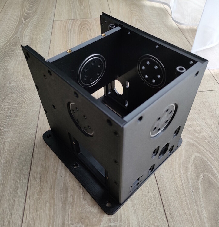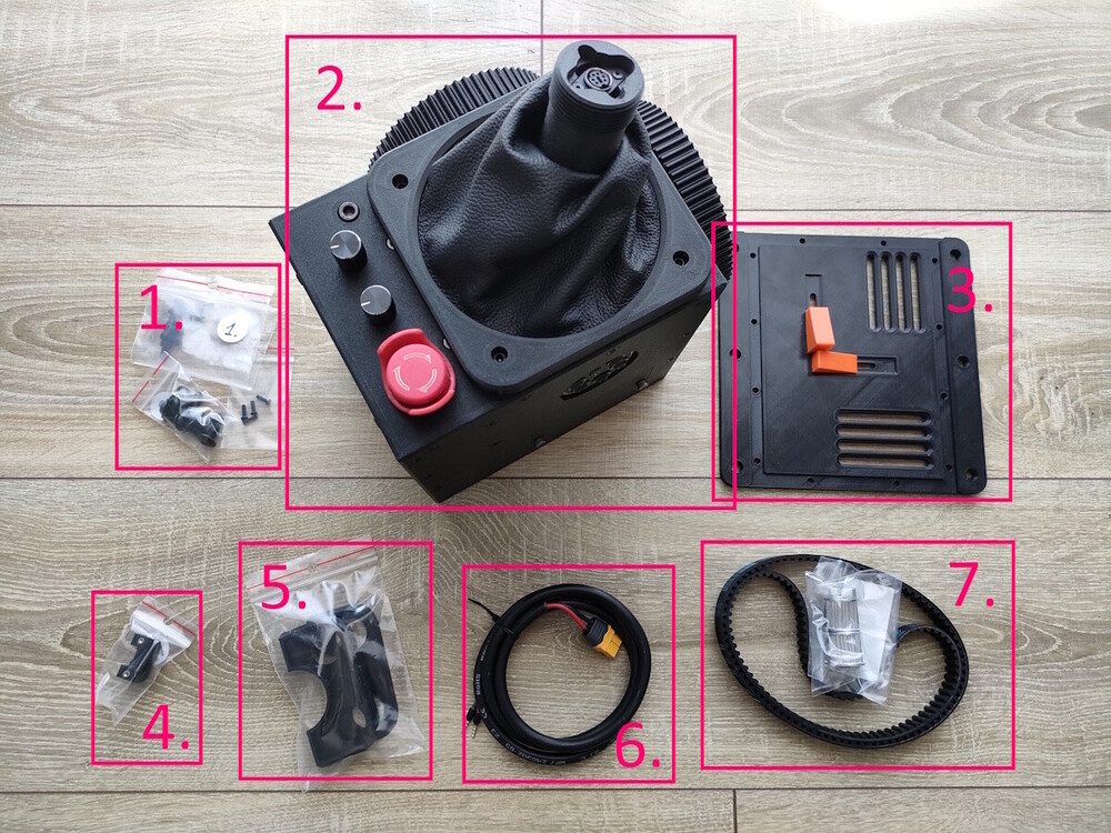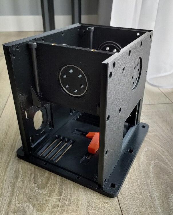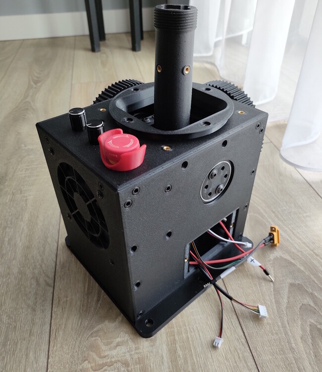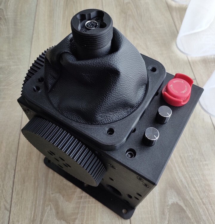 You don't have to wait any longer to feel the new quality that Force Feedback gives you. To build a Force Feedback Base you will need: 1. DIY FFB kit: 57BLF03 x2 + USB - 299€ (+VAT) 2. The complete Case Kit that I am promoting here 3. 19-24V/min. 10A power supply, e.g. this one What makes my Case Kit design unique: - designed for easy assembly - designed for 3D printing (can be screwed and unscrewed - threaded inserts were used), printed with PETG - timing belt tensioning system - moving gimbal elements made of durable material with the addition of carbon fiber (PETG CF) - engines support system for better stability and durability - easy access to the control board - XT60 safe power connector - large 90mm cooling fan - available for shipping right away if in stock, other within 2-3 weeks from order What is included in the Case Kit (option 1) 1. All required screws 2. Preassembled walls (x7) 3. Assembled gimbal 4. Gear wheels (x4) 5. Joystick bellow (made of natural leather) 6. Bellow cover 7. Timing belts (x2) 8. USB connector support 9. Board holder 10. Centering inserts 11. Power cord 12. Assembly instruction Price: 349€ + shipping cost There is also an option 2 order in which the entire Case Kit is assembled and all that remains is to install the VPforce Kit. What is included: 1. All required screws 2. Preassembled box 3. Bottom wall 4. USB connector support 5. Centering inserts 6. Power cord 7. Gear wheel 12T 8. Assembly instruction Price: 379€ + shipping cost Additional options: - gimbal printed from engineering material like PC ABS, PA12+CF, PC+CF (depending on the material: +15÷30€) - limiter with different angles (the original allows the joystick to be tilted 22° degrees in each direction). For example, with a 20cm extension, my limiter is: roll 18° and pitch 20° (for free if it replaces the original) - adapting the design to individual needs (individual pricing) What more is needed to run the device: - USB cable (type A to B) - any flight joystick grip compatible with Thrustmaster (other grips like WinWing and VKB needs an adapter – available here) Contact: I am located in Poland. I can send more pictures and videos in a private message. If you have any questions, feel free to write: rafalg78@gmail.com