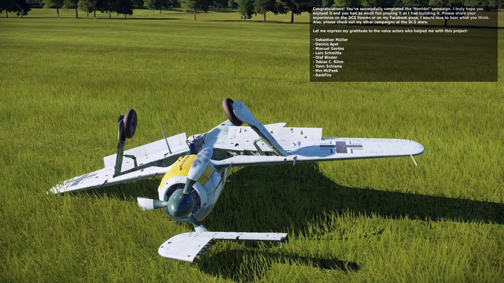 Hello everyone, I just finished the Horrido FW-190 campaign. It was an epic experience. The voice acting is really great, I'm glad they went with German + English subtitles for immersion. The missions are nicely varied with unexpected events. I also loved the radio broadcasts and music. Thanks! Some screenshots below: