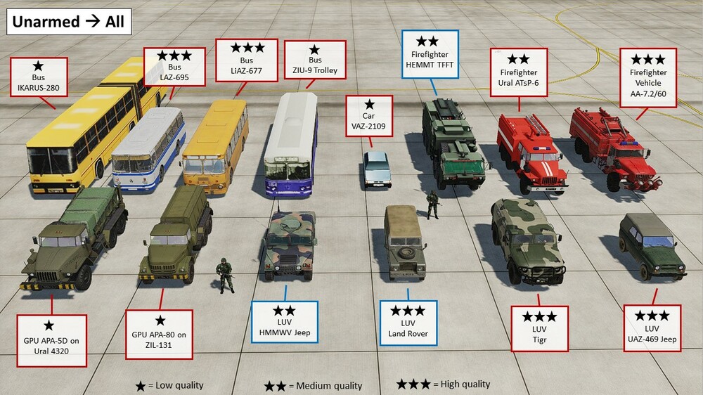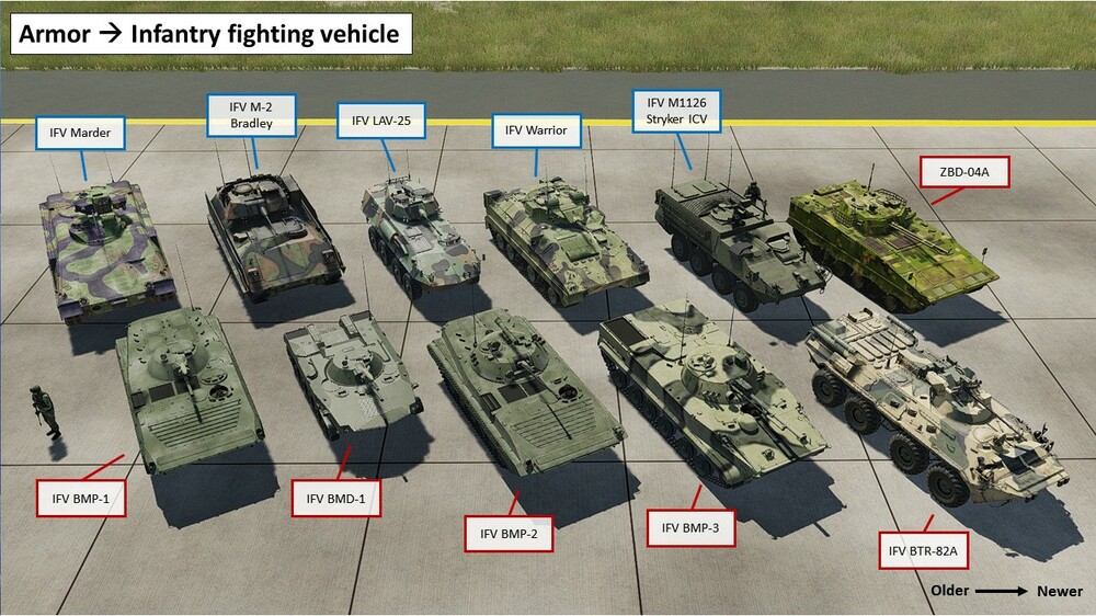 This is for all you mission editors and other curious people out there There are 3 parts in this guide series: GUIDE #1 - Visual overview of Mission Editor units - JETS AND HELICOPTERS: https://www.digitalcombatsimulator.com/en/files/3327933/ GUIDE #2 - Visual overview of Mission Editor units - GROUND UNITS (minus air defence): https://www.digitalcombatsimulator.com/en/files/3327950/ GUIDE #3 - Visual overview of Mission Editor units - STATIC OBJECTS: https://www.digitalcombatsimulator.com/en/files/3327988/ For SAM air defence see this excellent guide: https://www.digitalcombatsimulator.com/en/files/3327927/ Example photos from the "Ground Units guide" below: