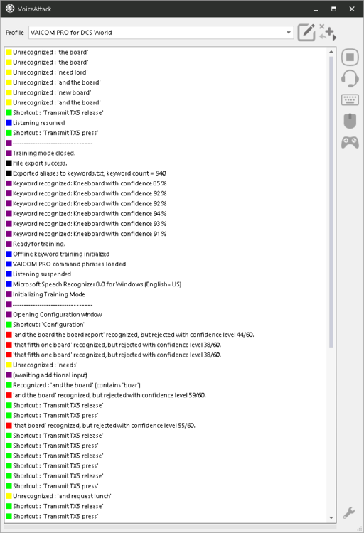 1. not only that, but no matter how many times I've voice trained a word successfully, it comes back as unrecognized after the training completes. Help! VoiceAttackFault.txt VAICOMPRO.log
