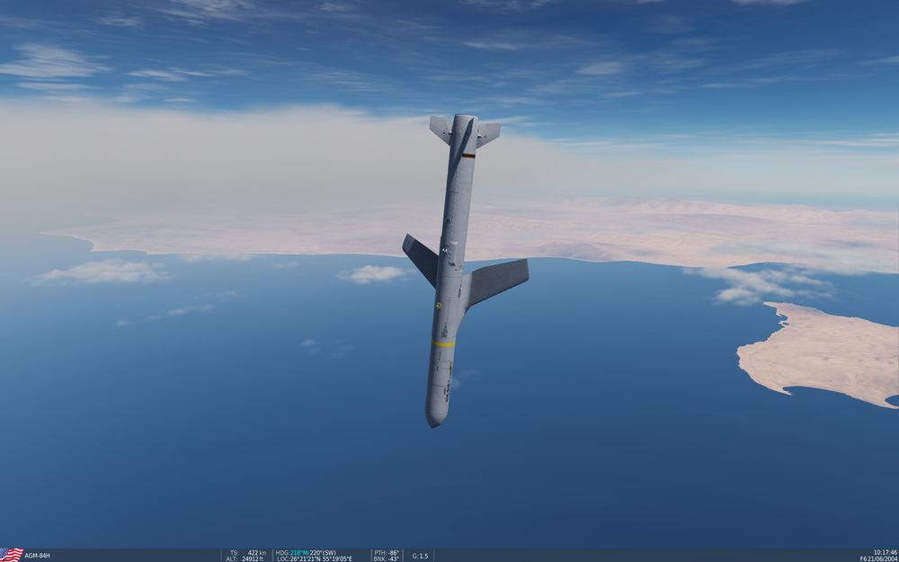 I attach three tracks for your perusal. Track 01 : the behaviour I intended to report. Things go very wrong at around 1017 as the missile plunges to its demise. Track 01a: I unintentionally left the fuse set to OFF and I got a different (and unexpected) result; even with the fusing incorrectly set should it do this? Around 1017 the missile doesn't make its last turn towards the target and gradually descends until it crashes into the sea. Track 02: I amended the mission so that the target was nearer and this time it worked as expected. I created this mission years ago, and this didn't happen at the time. Maybe it's something to do with the range or that the missile is (mostly) flying into wind; but surely an in-range indication shouldn't appear if the FP to the target is outside of the missile's range. Please ignore any mission failure, etc, messages, they are informational only. Searching I found this post, from January(!), which seems very similar. If it's the same issue, consider this a bump and an offer of additional information in the hope of encouraging a swift resolution. track_01a.trk track_01.trk track_02.trk