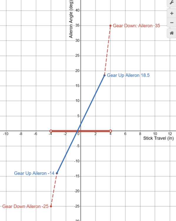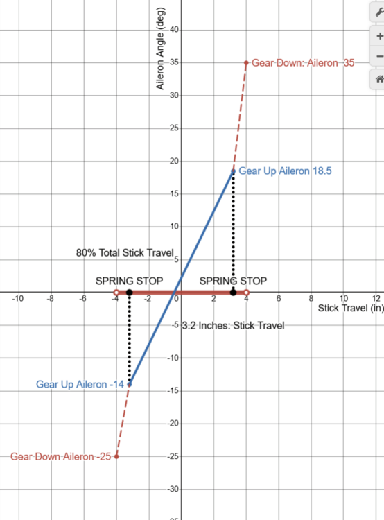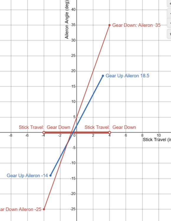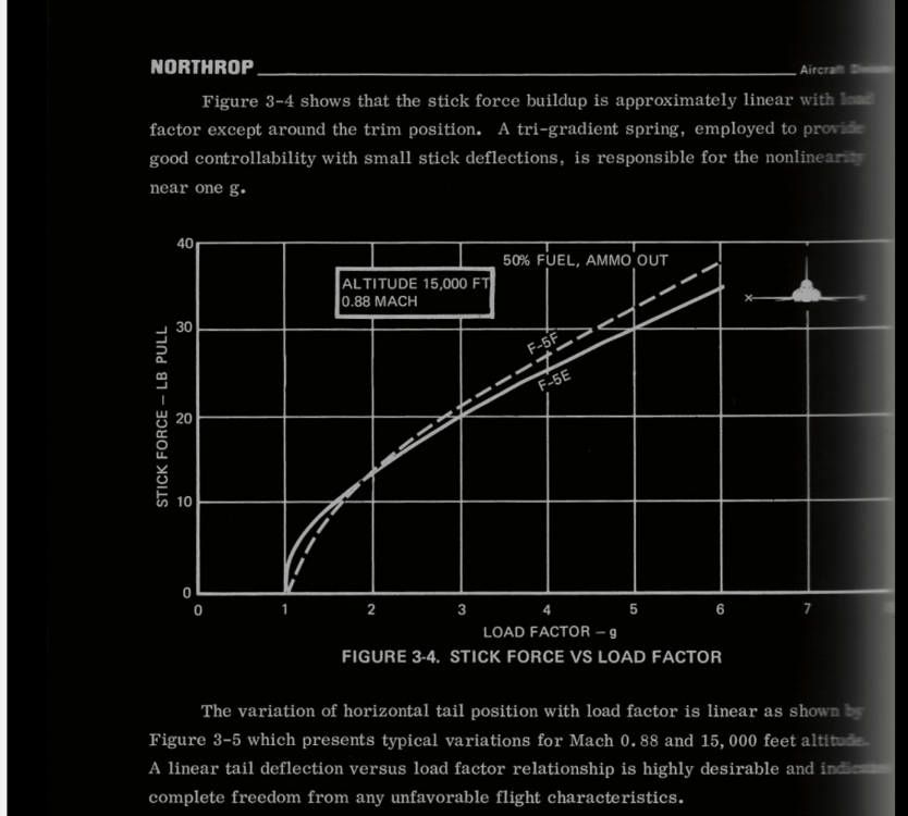 Requested Change: Move the position of the spring stop to 80% of the aileron axis. Problem: On the DCS F-5E, the aileron limiter / the spring stop, is located at 50 % of the aileron axis. Placement of the Spring Stop here is inaccurate and makes the F-5 difficult to accurately control laterally. To be clear, I am not calling for the removal of the spring stop, only that it moved to 80% of the joystick axis. While it is true that the spring stop limits the total aileron deflection by more than 50%, as is stated in the F-5E flight manual: Examination of more detailed descriptions of the flight control contained in official Northrop documentation Indicates that aileron deflection per control stick movement (the aileron gearing) is not linear and that the spring stop should be located at 80% of the roll stick travel. With the landing gear down: Stick Travel is = +- 4.0 inches, and the max aileron angle is 35 degrees Up, 25 degrees Down. For a total Aileron Angle of 60 degrees When the landing gear is up, the aileron limiter / spring stop is active. The Stick Travel is limited to: +- 3.2 inches. Thus the spring stop is located +- 3.2 inches from the center. +-3.2 being equivalent to 80% of the total Stick Travel (4 inches). As (3.2 / 4) = %80 At 80% stick travel; the aileron angle is limited to 18.5 degrees Up, 14 degrees down. The spring stop therefore limits total aileron angle by more than 50%. As (18.5+14) / (35 +25) = 54% While the details of the Northrop Technical Manual match the description of the Aileron Limiter from the Pilots Manual, “Limits the Aileron travel to one half”. Neither sources state that the flight controls are limited to 50% / half travel when the landing gear is raised. Plotting the aileron angles and stick position from the Technical Description, and connecting these points by the appropriate slope. We constructed a diagram depicting the aileron angle as a function of the stick position, often called the aileron gearing ratio. This chart indicates that the aileron limiter in the landing gear up (aileron limited) config, cannot be located at 50% position of the total control stick travel (+-2 inches) like in DCS. As the location of the points which coincide with Landing Gear Down (aileron limited) Config, like (3.2,18.5) are not located half way from the points which coincide with Gear Up Cofing, like (4.0, 35), along the slope of Gear Up Config. It is likely that the aileron gearing ratio is not linear. Rather it is constructed of two distinct gradients. Connected at the location of the Spring Stop, +-3.2 inches from the center of the control stick. This point being = to 80% of the total control travel (4 inches) Simply stated the Spring Stop has to be located where max aileron is achieved in Gear Up Config. Which means that the Spring Stop can only be located at +- 3.2 inches of stick travel, 80 % of the total stick travel. The aileron flight control system seems to be designed to provide linear response of the ailerons to control stick inputs up to the Spring Stop. The steep gradient beyond the Spring Stop would provide feedback to the pilot that the critical range of operation had been exceeded. As compared to the DCS 50 % the spring stop implementation The Northrop implementation of the Spring Stop (At 80%, +--3.2 inches stick travel) would result in improved lateral control (roll rate / bank angle) of the DCS F-5E. Moving the spring stop from 50% to 80% of the stick travel range, increases the range of motion of the player's joystick by 30% in the roll axis. The result would be a 1.6 times increase in the gearing ratio of the player's Joystick position to the F-5E’s aileron angle. Making the DCS much more precise and controllable about the roll axis. And may reduce inadvertent wing destruction caused by unintentionally high roll rates. Placing the spring stop at 80% of the stick travel, should be considered as it is realistic and would match the description in both the Pilot’s Manual and the Northrop Technical Description. While also improving the lateral flying qualities of the F-5E The derived non linear / multi / gradient aileron implementation also appears to be valid. Given the similar approach used by Northrop in the longitudinal flight controls. Consider the implementation of the tri-gradient feel spring in the pitch axis. Designed to linear relation between tail deflection and Load Factor (g’s). Aileron Limiter Track F-5E Roll Coupling .trk