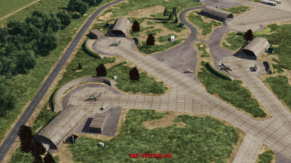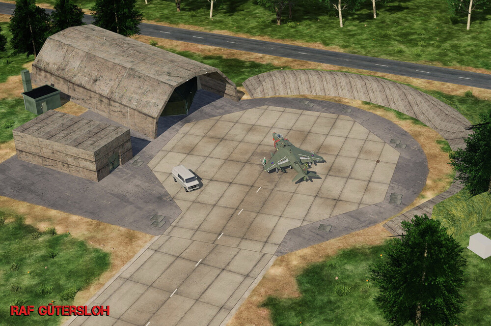 Bought this map 2 days ago. First off, thank you for doing this, UGRA! I know I'm early with this, since a lot will hopefully be added or fixed, but anyway, here we go again... I decided to get back into modding as much as possible. I know I never really finished what I started back then, but I can say I learned a lot. This time it feels different, because it's Germany — I live here on the westide if germany, grew up here, and know many of the bases since I was a little kid in the early '90s. So there's a personal connection to it to some degree. (Even if LA is my second home.) This isn't meant to bash anyone, but I did pay $55 for this map, so yeah — while I don't expect much accurate cities or villages (it's not possible without satellite data or AI generating detailed roadmaps and building placements), I do at least expect the airbases to be accurate. Right now, RAF Gütersloh looks like a civilian airport, with 99% inaccurate buildings. Also, the shelters are wrong — too many colorful buildings and so on. It's fun to have a bike at all the main gates, but I'd prefer accuracy over little details like that. So, I decided to start this project. And yes, it will take time and resources — I'm on my own doing this. More about that later. This is just a start — models are not finished yet, it's all work in progress. The only thing that's finished right now is the shelter concrete texture. Sad thing already: the AI gets scared when you place something "over" their "heads" — jets automatically choose the next available ramp start spot to take off from, even though the shelters don't even have a collision shell yet. Choosing ground start is no option since the Harrier go full speed and just crash somewhere.. very buggy So the idea with Shelters is, to some degree, useless until one of the following happens: - UGRA Media adopts my hardened shelter model, - or they create their own, - or ED tweaks the AI so they're less "scared". (Also hoping the scenery remove object tool gets enhanced too.) enough talk for now... very early stages shots