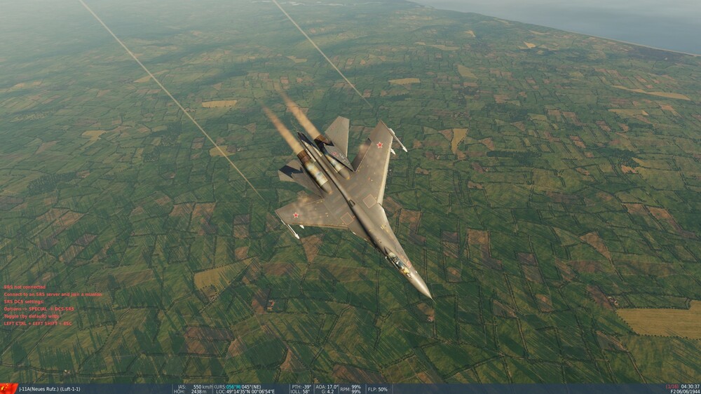 The wing vapor effect is completely absent on the Su-27/33...you can pull as many high G´s as you you wish there s no effect on the aircraft. Also the vapor effect on Flankers are wrong that they have no vapors on the wing/airframe edge like on the pictures. Only on the J-11A module are visible vapor effects but none also at the wing/airframe edge.
