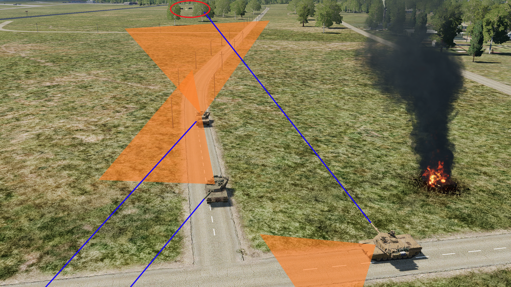 Or even just ground unit sectors in general. Can we either assign sectors of fire per waypoint or request the devs to rework the logic? Attached are some examples of what I'm talking about. I know, ground combat is lame and a low priority compared to adding some feature to a hornet. But this does need to be addressed as ground units die often because they're looking in the wrong spots. The orange triangle should be the units sectors of fire. The blue line are where the barrel is pointed. These AI skill is set to excellent by the way. The image with the Brads. The far left one is looking far right even though there is an enemy to it's left about to engage them. The image with the Abrams. The lead vehicle should be looking forward of the element, the second would be looking left or right of forward movement. Both forward moving vehicles are looking behind them while there is an enemy to the front. The rear vehicle should be pulling rear security but is actually looking at their forward movement. Thanks