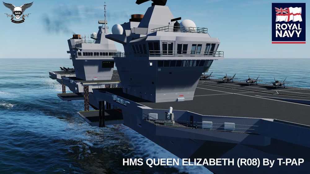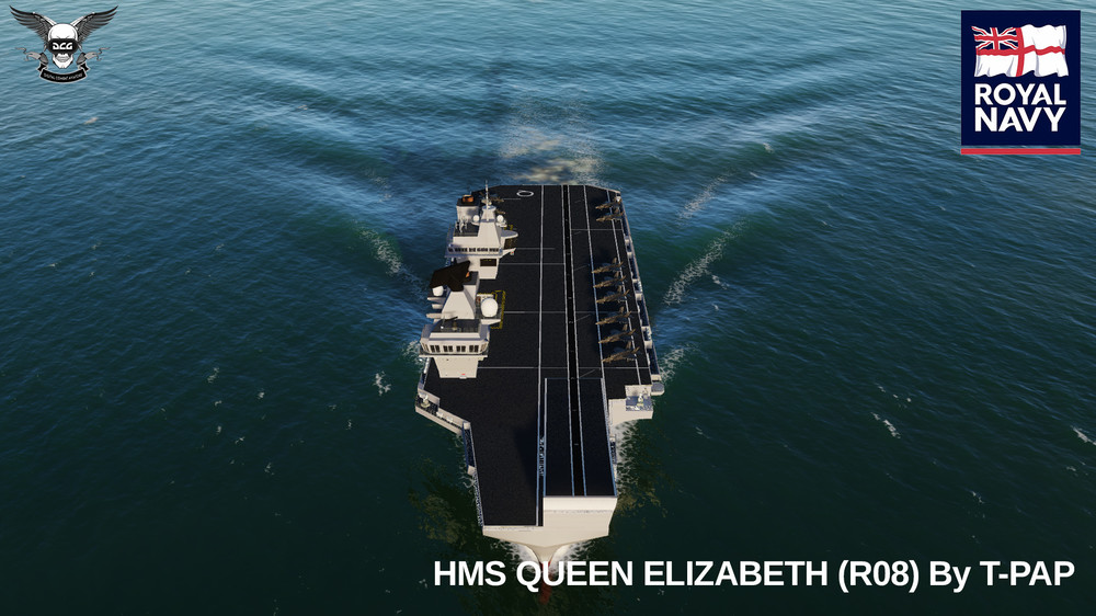 LATEST UPDATE : 12.02.2021 Hey everyone ! Carrier is now available for download via the user files seciton : HMS Queen Elizabeth can be downloaded here : https://www.digitalcombatsimulator.com/en/files/3315024/ The HMS Queen Elizabeth will be the next Royal Navy carrier I will be bringing to DCS . This is a fully created from scratch model and will feature working elevators and spawning inside the hangar and making your way up to deck ! This same feature will also be added to my other 2 Royal navy carrier mods , HMS Illustrious and Invincible which you can find here : -> https://forums.eagle.ru/topic/254636-hms-invincible-hms-illustrious-v13-mod-update-19012021/page/1/?tab=comments#comment-4549916 LATEST UPDATE : 12.02.2021 - Original 3D Model - Night Lighting based on photos - Launches and lands 8 aircraft user and AI as well as helicopters What doesn't work : -Weapons have not been modelled yet -Hangar has been modelled but elevators will not work yet (Next updates) - F-35s taking off from HMS Queen Elizabeth . AI And landing issues resolved ! - Night lighting implemented Watch quick teaser : So here are some pics of the HMS QE . Have now completely finished the modelling and have started the tedious task of texturing her Won't be long now