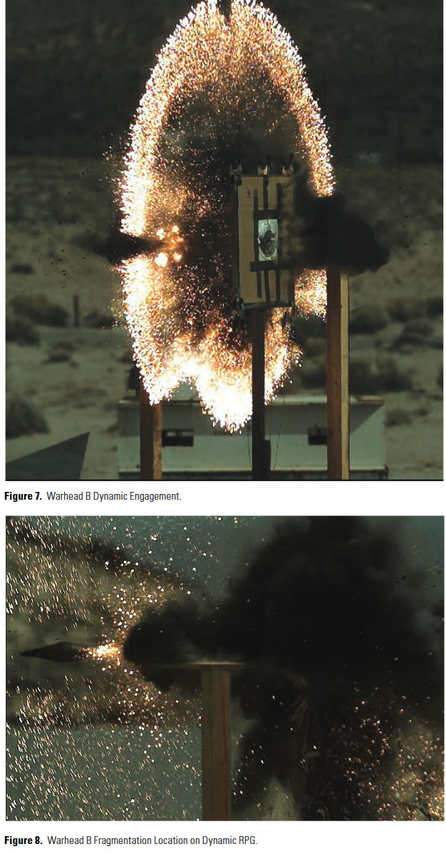 Heli Posted August 3, 2018 Author Posted August 3, 2018 (edited) ANTI-RPG WARHEAD: AN AIRCRAFT PROTECTION SOLUTION Rocket-propelled grenades (RPGs) pose a significant and growing threat to military aircraft. RPGs are heavily proliferated in all military theatres and are increasingly used to target U.S. and allied aircraft. To counter this prolific threat, multiple solutions are being researched by the Joint Aircraft Survivability Program Office (JASPO). The research project described herein investigates several warhead damage mechanisms against RPGs that also meet stringent active protection system (APS) requirements for effectiveness and collateral damage mitigation. TO KILL AN RPG The greatest weakness of an RPG is also arguably one of its greatest strengths. An RPG is an unguided weapon, meaning it contains no seeker or other electronics designed to guide the weapon toward a target. This weakness has typically required operators to position themselves close enough to ensure a direct hit on a moving targeted aircraft. Figure 1. Depiction of a Notional RPG With Launcher (Top) and Cross Section of a Notional RPG Variant Warhead (Bottom). A weapon of this nature also brings forth many challenges to defend against it. An RPG, such as the one shown in Figure 1, does not have any guidance electronics capable of being jammed/tricked/or spoofed; wherever the RPG has been aimed, it is going to hit. Thus, a kinetic approach is one of the defense mechanisms being considered to counter RPG engagements against aircraft. One such method is to use an APS to detect, track, and deploy a defensive missile (aka a kill vehicle [KV]) and destroy the incoming RPG before it can make contact with the aircraft. The focus of this project is to deter-mine what types of KV payloads are capable of destroying an RPG once the KV has successfully guided to its intercept. Our design objective was constricted to fit the KV within the standard Mobile Jettison Unit (MJU) flare size for the ALE-47 flare dispenser (shown in Figure 2). In the event that the objective could not meet lethality requirements, however, the ALE-47 tubes could be modified to fit a larger warhead. Figure 2. ALE-47 Flare Dispenser. Another critical performance requirement was to minimize collateral damage, whether it be to troops on the ground, a wingman, or the launching aircraft itself. Strict timelines of intercepting close-range RPGs, near-by friendly troops during landing or take-off, and wingman aircraft could cause some engagements to occur extremely close to friendly aircraft or troops. Thus, lethal fragments from either the KV or RPG itself must be minimized. NOTABLE WORK Destruction of RPGs has been studied in the past by many Government laboratories and contractors. Most related to the work for this project is the research that was conducted by Lovelace et al. [1] at the U.S. Army Aviation and Missile Research, Development, and Engineering Center (AMRDEC) and Suarez et al. [2] at the U.S. Army Armament Research, Development and Engineering Center (ARDEC). In addition, based on the similarities in their goals, the U.S. Naval Air Warfare Center – Weapons Division (NAWCWD) teamed up with ARDEC to further the research in this area. The new warhead designs were based on work performed by Suarez and this team in 2014, where they statically tested both pure blast warheads and controlled fragmentation warheads against RPGs at specific standoff distances. The team concluded that pure blast warheads were not reliable at breaking up or “dudding” an RPG at tested distances. Their controlled fragmentation warheads, however, were highly effective, many times sympathetically detonating the explosive within the RPG. Nonetheless, the controlled fragmentation warheads would not meet the low collateral damage criteria for this project and could also produce jetting of the shaped charge liner, which could be lethal to nearby friendly aircraft or troops. NAWCWD’s approach to reduce collateral damage uses an optimized liner designed to produce high-velocity fragments in the near field of the engagement but to slow down rapidly shortly after the engagement. The material, shape, and size of the fragments have been specifically chosen to provide effectiveness within the miss distance of the APS projectile and then slow down rapidly from air-induced drag. Additionally, Lovelace et al. were able to demonstrate improved performance against RPGs over pure blast explosives by adding additional impulse to the engagement. However, there was some concern if this approach would be viable, when combined with the smaller amount of explosive, and ultimately be able to damage the RPG. As such, a related approach was further investigated. Mike Jenkins from the U.S. Air Force Research Laboratory (AFRL) has performed multiple experiments on the efficiency of driving liners by explosive [3]. Using his research, a warhead configuration was optimized for the destruction of RPGs. Figure 3 provides an example of estimating liner ejection velocity and pattern as a function of distance from explosive detonation. Figure 3. AFRL Hydrocode Modeling. NAWCWD formulated two different types of experimental explosives: one impulse-loaded explosive and one highly brisant explosive. The impulse-loaded explosive is designed to produce a longer lasting pushing force on the warhead liner, where the brisant explosive is designed to produce a sharp high-amplitude force on the liner. These warhead designs were then both fabricated in two different diameters for a total of four warhead designs (shown in Table 1). Table 1. NAWCWD Warhead Designs To test the effectiveness of the experimental warheads, two RPGs were placed at the same distance from the center of the warhead prior to detonation (as shown in Figure 4). One RPG was placed on its side to represent perpendicular intercept geometry, while the other RPG was placed nose down, representing parallel intercept geometry. To test the low colla