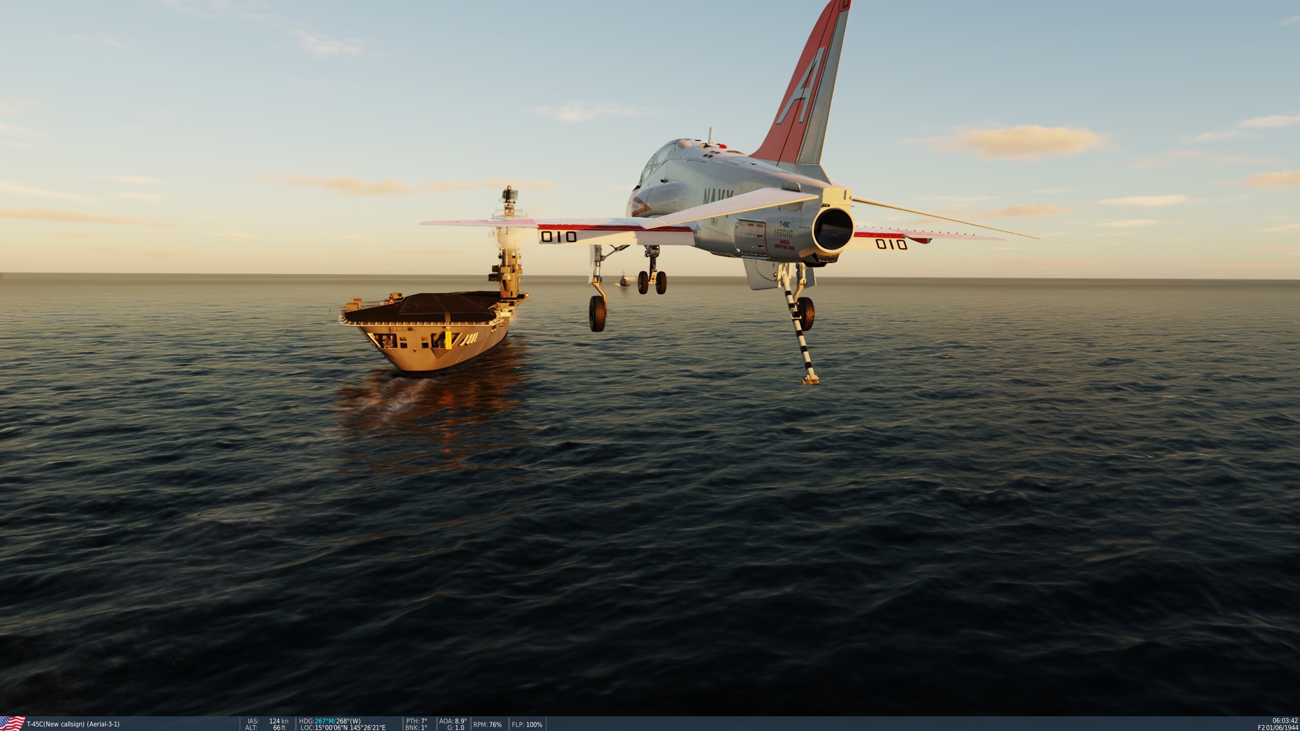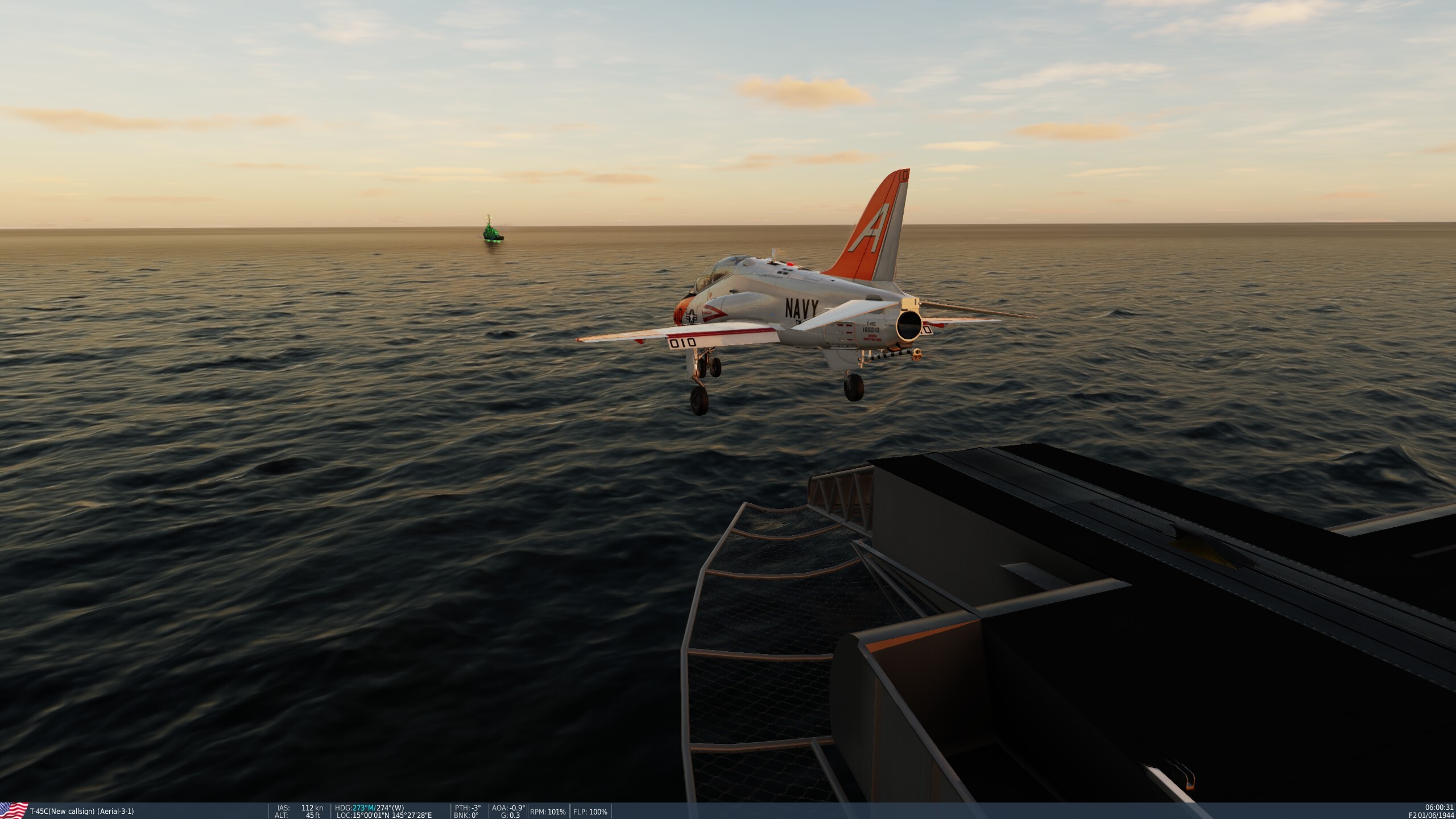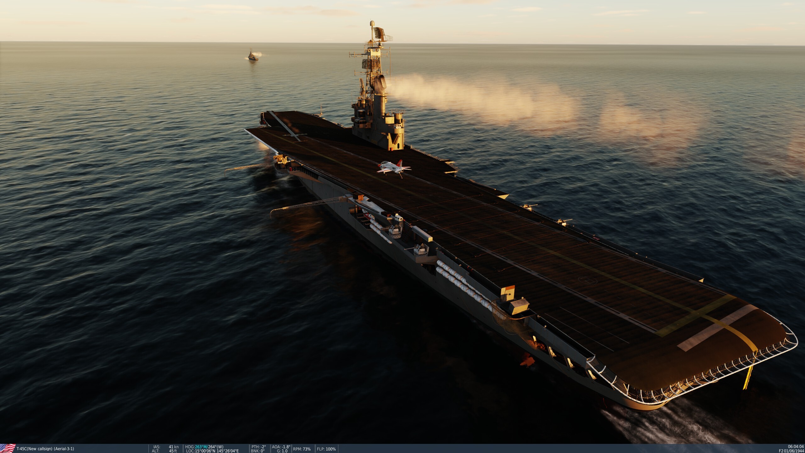 Holbeach Posted 12 hours ago Posted 12 hours ago (edited) Record of my first Carrier trap with the T45.. Although I posted on the 1st page, I'd forgotten about this mod until this morning. I didn't realise how advanced it was. Downloaded v 1.2. Here is my second attempt at a landing on a Carrier. 1st attempt, the hook bounced the wires, but the 2nd attempt worked. I spent a lot of time in the Hawk. This is far better than I expected.. Edit: I found out that the parking brake is on by default, so a key needs to be assigned. This increased the T/O speed with full tanks to 123kt. .. Edited 6 hours ago by Holbeach 2 ASUS 2600K 3.8. P8Z68-V. ASUS ROG Strix RTX 2080Ti, RAM 16gb Corsair. M2 NVME 2gb. 2 SSD. 3 HDD. 1 kW ps. X-52. Saitek pedals. ..