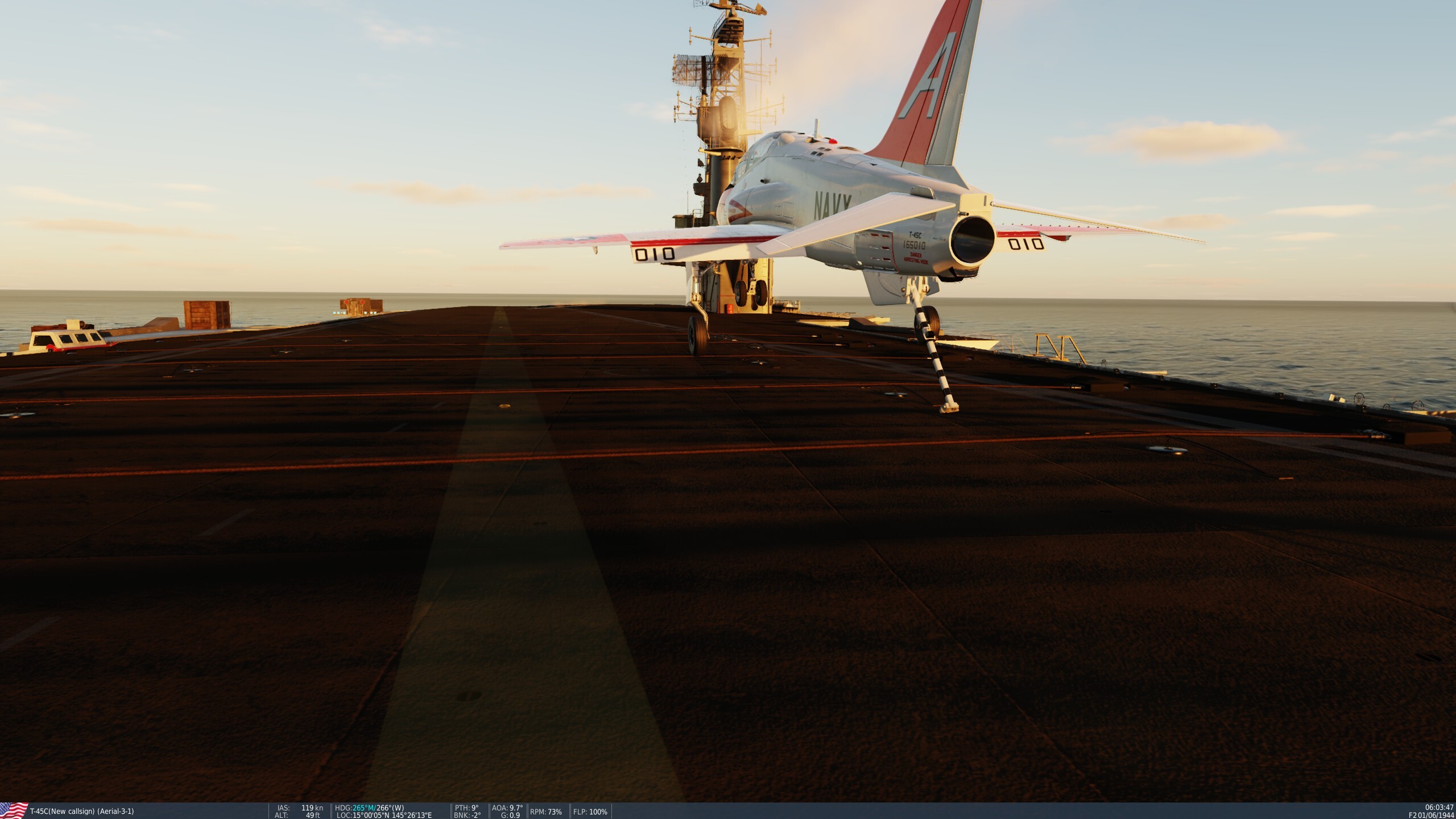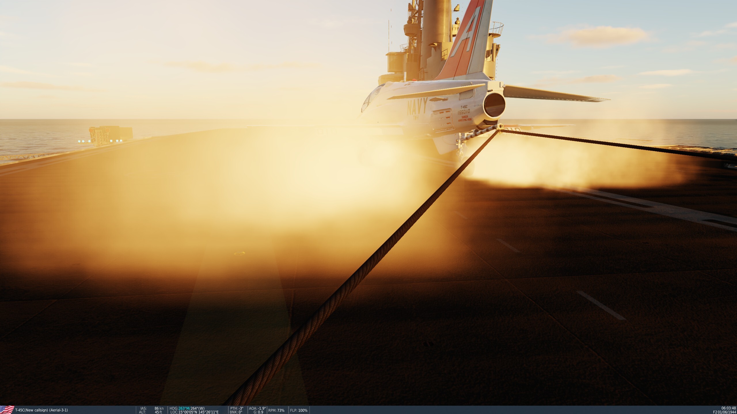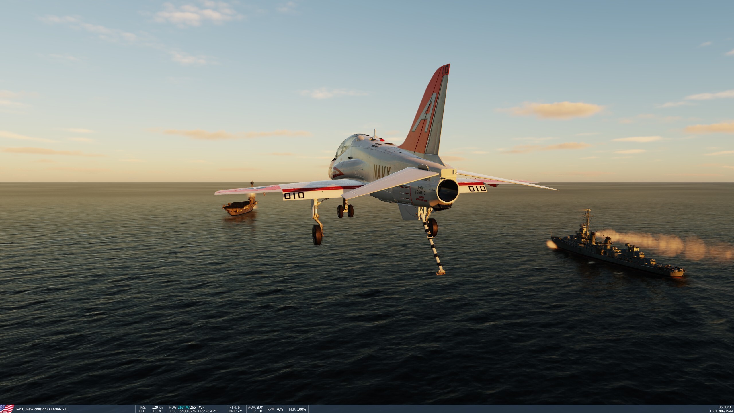 Holbeach Posted 12 hours ago Posted 12 hours ago (edited) Record of my first Carrier trap with the T45.. Although I posted on the 1st page, I'd forgotten about this mod until this morning. I didn't realise how advanced it was. Downloaded v 1.2. Here is my second attempt at a landing on a Carrier. 1st attempt, the hook bounced the wires, but the 2nd attempt worked. I spent a lot of time in the Hawk. This is far better than I expected.. Edit: I found out that the parking brake is on by default, so a key needs to be assigned. This increased the T/O speed with full tanks to 123kt. .. Edited 6 hours ago by Holbeach 2 ASUS 2600K 3.8. P8Z68-V. ASUS ROG Strix RTX 2080Ti, RAM 16gb Corsair. M2 NVME 2gb. 2 SSD. 3 HDD. 1 kW ps. X-52. Saitek pedals. ..