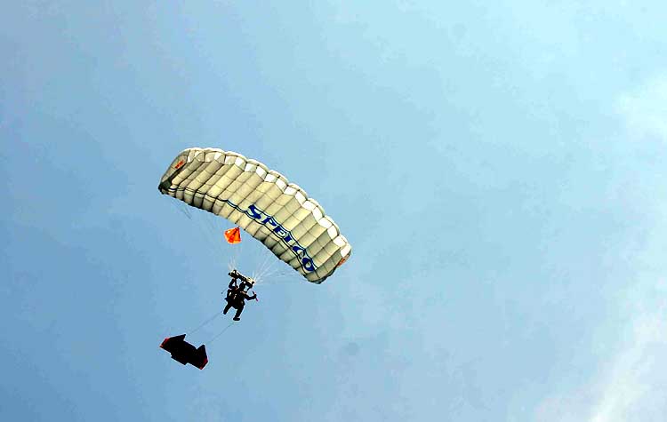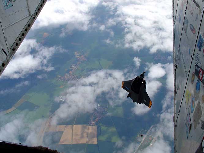 RomanSR Posted January 17, 2009 Posted January 17, 2009 It's a Bird. It's a Plane. It's ... Batman? By Markus Becker A single-man flying wing, originally intended as a sports gimmick, may soon allow elite soldiers to fly into action like Batman. International military experts are excited -- and worried about what the enemy might get up to with the new device. The man with the dull black wing on his back is being lashed at by the wind. The rear hatch of the airplane is wide open. The engines are screaming in a duet with the storm. Four thousand meters (2.5 miles) below, lush grass covers gently rolling hills. Then the man jumps off the edge and the force of the wind hits him like a giant fist. He tumbles about a few times before settling into a stable position. Seconds later, he's disappeared from sight -- with the help of his wing, he soars away at a speed of about 200 kilometers an hour (124 mph). This scene is taken neither from a comic book nor from an action film, and the man who jumped was neither Batman nor 007 -- even if the wing has been considered for inclusion in a James Bond film. The man attached to the flying machine was Erich Jelitko, a former parachutist and now a member of the team that is developing a new aviation system. The futurist object is a kind of airplane, complete with wings and rudder -- the primary difference being that it's smaller than the pilot. The flying wing had its first moment of fame three years ago: In the summer of 2003, the adventure sports enthusiast Felix Baumgartner used such a device to fly across the British Channel and into England. Back then, the flying wing was still called "Skyray" and had been conceived of as an adventure sports gimmick by its inventor, Alban Geissler. Now that Geissler has put more work into the device, it's ready for use in adventures of the non-leisurely variety: The flying wing is now called "Gryphon" and is being perfected for use by elite military units. The fun gimmick has become a weapons system. "The military version has greater chances of success at the moment," says 35-year-old Geissler as he crouches in the sun at the small airstrip in the German town of Eisenach-Kindel and prepares two "Gryphons" for their test flights. He sounds wistful. "You have to look paramilitary" Accompanied by his two military companions, former paratroopers Erich Jelitko and Frank Carreras, Geissler looks a bit like a boy who got lost in the cellar while playing only to suddenly find himself standing in front of his father's gun wrack. That's true despite the martial outfit worn by the trio -- black hoods, black jackets and fatigues. "When you're talking to elite soldiers in Yemen, you can't present yourself like a flower courier," Jelitko says with his Bavarian accent. "You have to look like a paramilitary." Jeltiko would know: For years he was the Munich trainer for the German army's paratroopers -- an elite unit with a pronounced and sometimes controversial sense of tradition. Now the 44-year-old works for a Munich-based electronics and logistics company, Elektroniksystem- und Logistik-GmbH (ESG), where he's responsible for developing equipment for paratroopers. His old contacts still come in useful. "Paratroopers know one another," Jelitko says. That helps -- especially if you're developing a unique device like the "Gryphon" in order later to sell it at a profit, as ESG hopes to do. NEWSLETTER Sign up for Spiegel Online's daily newsletter and get the best of Der Spiegel's and Spiegel Online's international coverage in your In-Box everyday. The futurist aviation device, known in Germany as "Greif" ("gryphon"), is a kind of personal wing. "Compared to a regular parachute, it feels like trading a moped with a race motorcycle," Jelitko says. The pilot races towards the ground headfirst at 220 kilometers an hour (137 mph), arms by his side, his hand clutching rotary handles that control the rudder. Although the Gryphon pilot moves through the air much faster than someone using a regular parachute, he can stay in the air much longer if need be, because there is no period of free fall. "It's a total rush" To land, all the pilot has to do is separate the wing from the backpack and open the parachute contained inside. The wing remains attached to the pilot by a cord and tumbles to the ground a few meters below him, complete with the baggage stored inside -- the current capacity is 20 kilograms (44 lbs.). "You can fly this device like an airplane," Jelitko gushes. "It's a total rush." As long as the device doesn't cause trouble, that is. Controlling the flying wing is still a challenge, even for specialists like Jelitko and Carreras. That became clear during the trial run at Eisenach too. "The wing is unsteady when it's in the air," Jelitko grumbled as soon as he was back on the ground. The 38-year-old Carreras complained -- and even performed a crash landing. The "Gryphon" broke during its rough touchdown on the meadow. "We have to perfect it to the point where normal people can handle it, not just specialists" says Geissler, the engineer. That's why the finished version of the flying wing will contain an electronic system that will take care of some of the steering for the pilot, just like a modern airplane, Geissler says. The prototypes Jelitko is currently testing with Carreras already promise unheard of possibilities for the military. A paratrooper operation normally looks something like this: An airplane drops the troops off under cover of darkness and as close to their target area as possible -- but without coming so close as to be discovered by enemy radar. The higher the altitude at which the parachutists exit the airplane, the further into their target area they can drift. A special system developed by ESG and already in use by the German military comes complete with an oxygen supply and allows the parachutists to jump from the plane at an altitude of up to 10 kilometers (6.2 miles). "In theory, that allows for a reach of 40 kilo