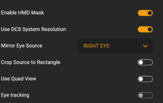 WipeUout Posted 20 minutes ago Posted 20 minutes ago null@Mr_sukebe Are you using a special version of DCS? No slider under Enable HMD Mask... ------------------------------------------------------------------------------------------------------------------------------------------------------------ 9800X3D, RTX 4090, 96GB DDR 5, MSI Tomahawk 870E, Crucial 2TB x 2, TM WARTHOG COMBO + PENDULAR RUDDER PEDALS, THE AMAZING PIMAX 8K X, Sony 5.1 Spks+SubW | DCS, A-10C_II, AH-64D, F-14/15E/16/18, F-86F, AV-8B, M-2000C, SA342, Huey, Spitfire, FC3.