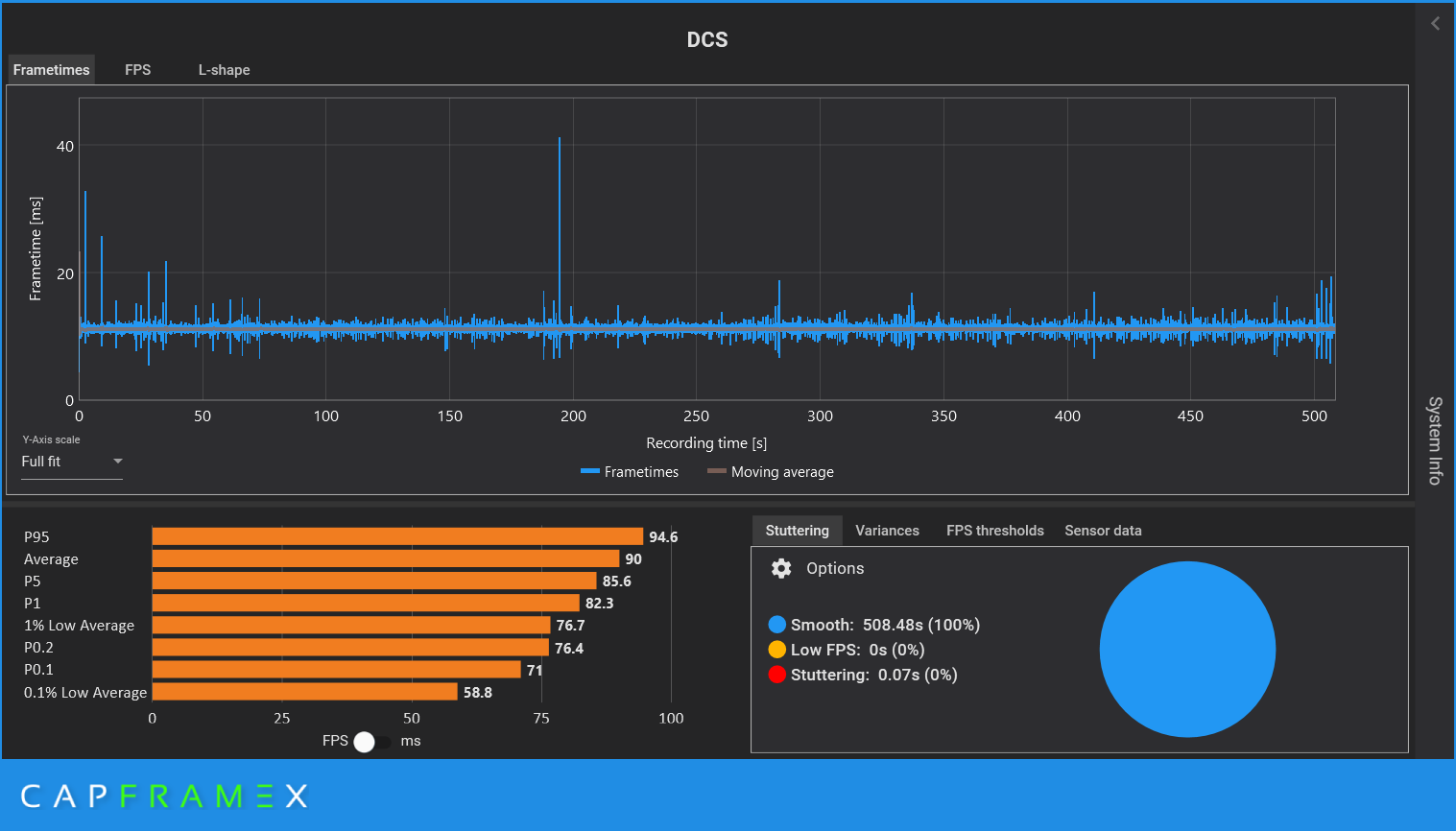 The_Nephilim Posted Friday at 04:31 PM Author Posted Friday at 04:31 PM (edited) I am done with messing with FSOS. it seems after a while it starts acting funny or maybe it was just me.. I am now trying to keep my .1% lows lower then 11.1ms as I had switched to 90hz and it is still keeping up altho I am at 80% Rez in the G2.. Which does not look too bad but I am able to keep my Frametimes under 11.1ms 99.9% of the time.. I do believe the 1% lows are the cause of most people stutter.. I would say if you have stutter,judder or whatever you want to call it check your 1% frametimes. EDIT: I was wondering if a dev could chime in on why all of the sudden DCS seems to run so perfect for me at least. I am getting under 7ms Frametimes for GPU and less then 6ms on CPU.. it is really wierd why it seems to work like it should of since I had the 4070ti.. Edited Saturday at 12:46 AM by The_Nephilim Intel Ultra 265K 5.5GHZ / Gigabyte Z890 Aorus Elite / MSI 4070Ti Ventus 12GB / SoundBlaster Z SoundCard / Corsair Vengance 64GB Ram / HP Reverb G2 / Samsung 980 Pro 2TB Games / Crucial 512GB M.2 Win 11 Pro 21H2 / ButtKicker Gamer / CoolerMaster TD500 Mesh V2 PC Case