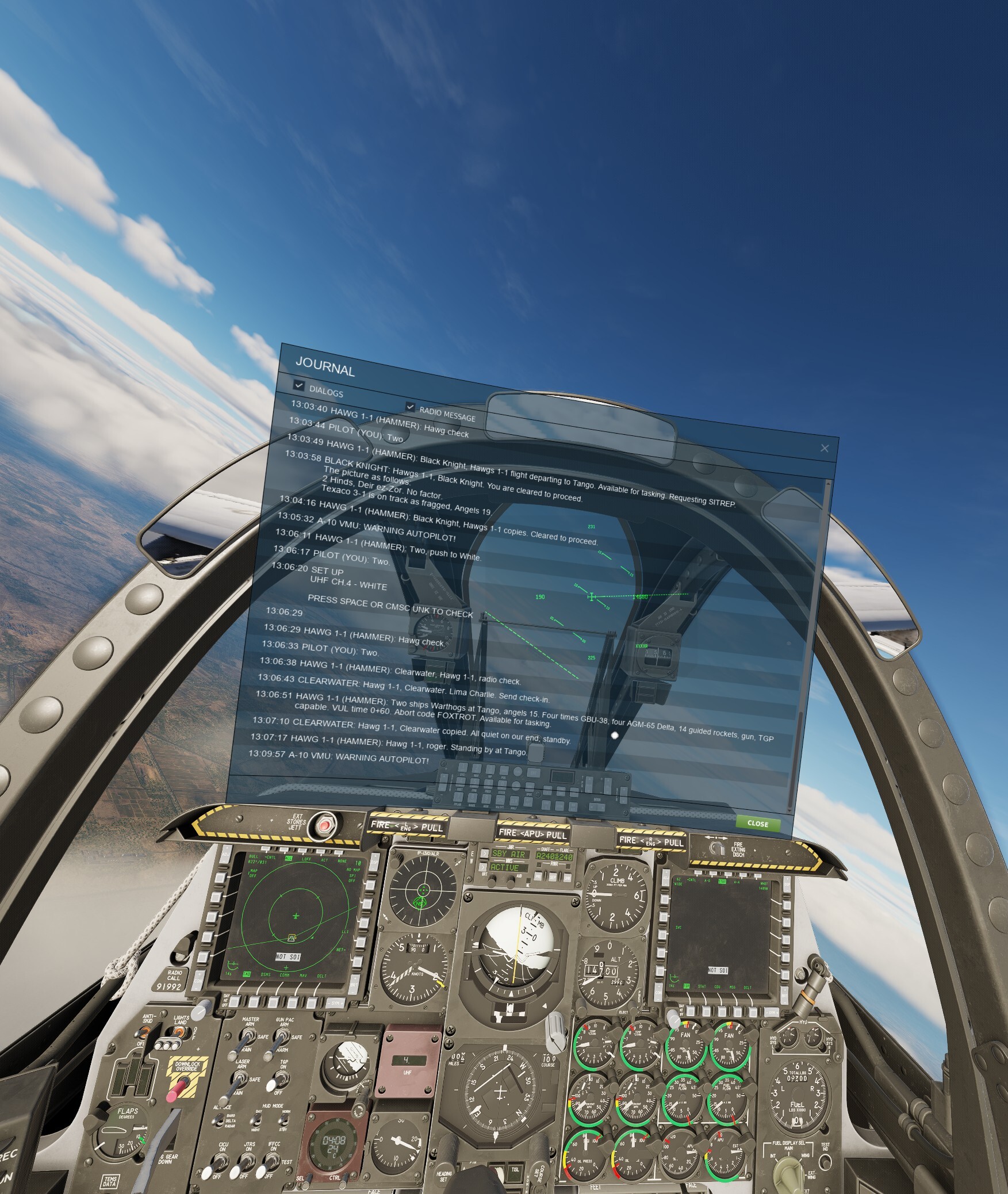 Sway Posted yesterday at 01:27 PM Posted yesterday at 01:27 PM Hi there, I ran the mission 12 two timesand got the same problem. After the refueling step, I follow the Hammer to the Tango WP. We are instructed to standby by Clearwater. The Hammer flys from Tango to Big City and vice versa. For hours! Nothing seems to be triggered at this stage, not any radio calls from Clearwater, Black Knight. Not even from the Hammer. I attached screenshots of the message history. The track file is 75 MB large, so it can't be joined here. (limit is 50 MB).