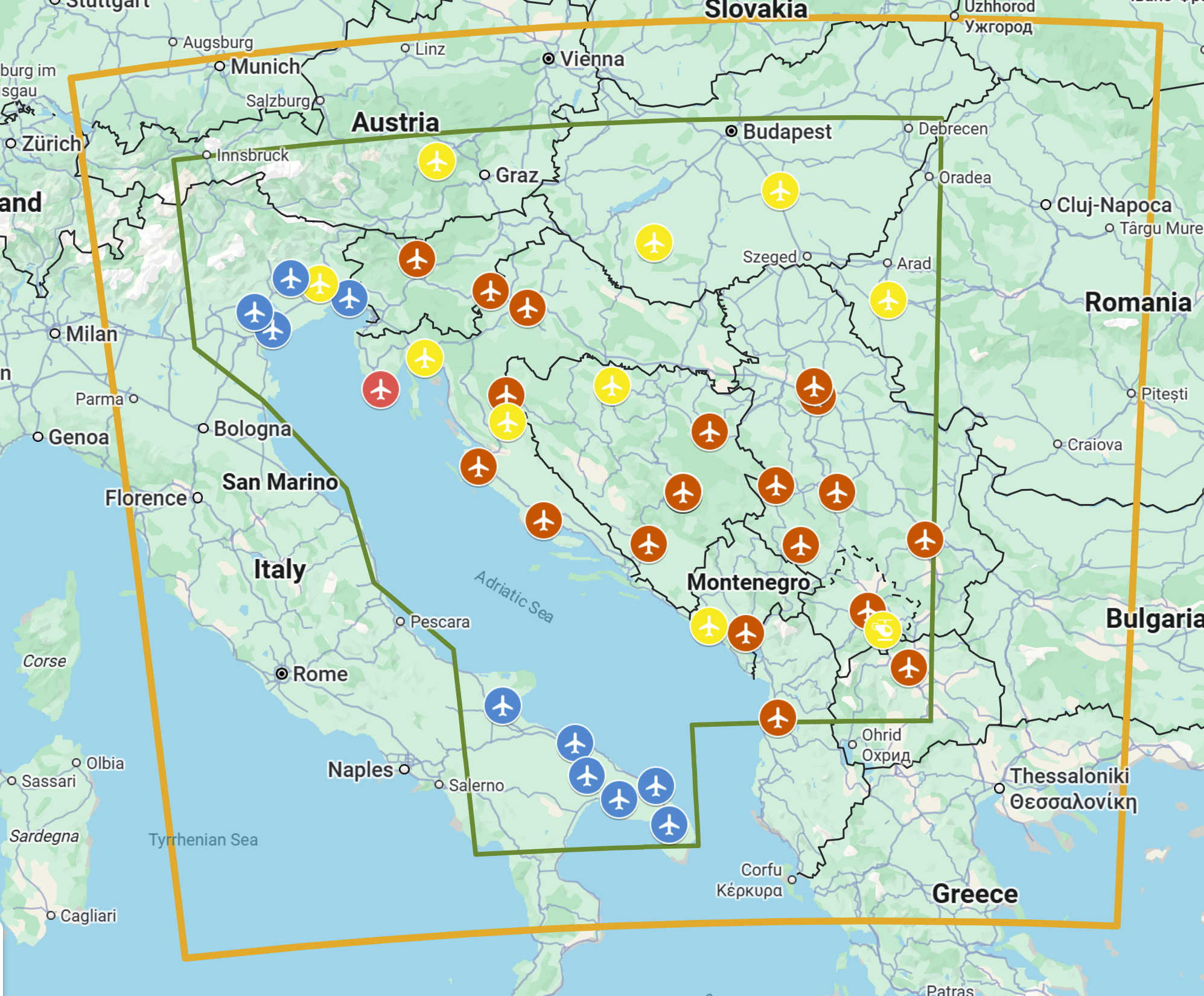 OnReTech Posted 3 hours ago Posted 3 hours ago (edited) Dear Friends! Thank you all for the many outstanding suggestions on potential areas to expand the map outside the currently planned area. We will certainly keep these in mind if we include such an expansion, much like the extensive expansion we did for the Sinai map into Israel and Lebanon. For now though, our focus is on the high to medium detail area inside the green zone. We've reviewed the Wish List and added the next airfields: Udbina (Croatia) Tivat (Montenegro) civil Banja Luka (BiH) civil Rivolto Air Base (Italia) military Tarzar Airbase (Hungary) military Kecskemet Air Base (Hungary) military Zeltweg Air Base (Austria) military Rijeka Airport (Croatia) civil Timișoara (Romania) Camp Bondsteel (Kosovo) Helicopters These spots are marked in yellow Best wishes, OnReTech team Edited 1 hour ago by OnReTech 5 4