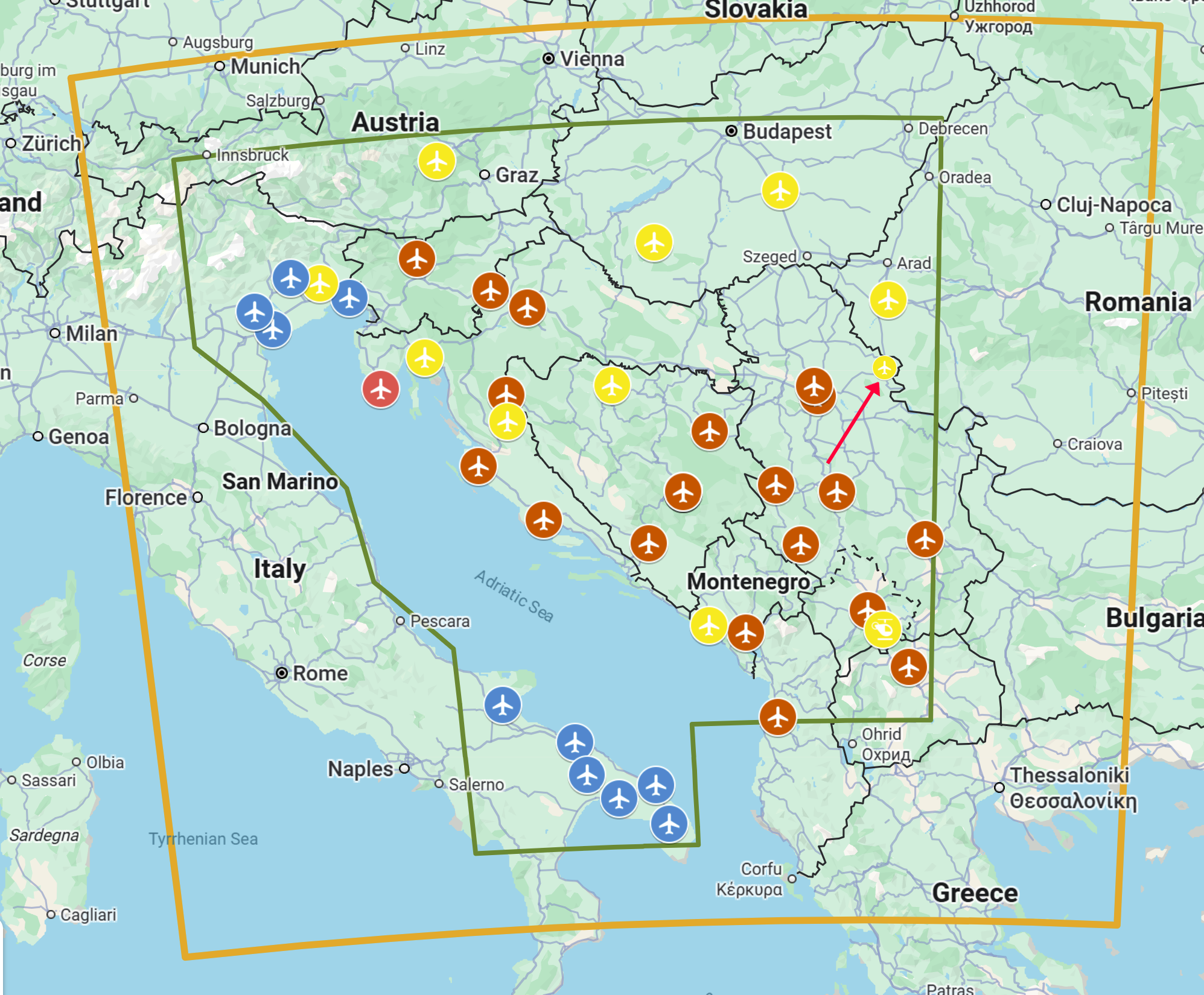 OnReTech Posted 3 hours ago Posted 3 hours ago (edited) Dear Friends! Thank you all for the many outstanding suggestions on potential areas to expand the map outside the currently planned area. We will certainly keep these in mind if we include such an expansion, much like the extensive expansion we did for the Sinai map into Israel and Lebanon. For now though, our focus is on the high to medium detail area inside the green zone. We've reviewed the Wish List and added the next airfields: Udbina (Croatia) Tivat (Montenegro) civil Banja Luka (BiH) civil Rivolto Air Base (Italia) military Tarzar Airbase (Hungary) military Kecskemet Air Base (Hungary) military Zeltweg Air Base (Austria) military Rijeka Airport (Croatia) civil Timișoara (Romania) Camp Bondsteel (Kosovo) Helicopters These spots are marked in yellow Best wishes, OnReTech team Edited 1 hour ago by OnReTech 5 4