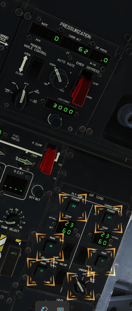 dresoccer4 Posted 20 hours ago Author Posted 20 hours ago 29 minutes ago, Nighthwk said: Your pressurization mode switch is likely in 'aux vent' or 'no press'. Put it to auto, and the packs will turn on. you mean this panel? it's indeed in Auto null Acer Predator Triton 700 || i7-7700HQ || 512GB SSD || 32GB RAM || GTX1080 Max-Q || FFB II and Thrustmaster TWCS Throttle || All DCS Modules