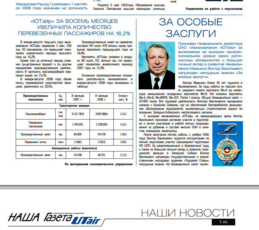 Узнаю в UTAIR ,наших там много руководит,если такая статистика конечно существует , награжденных знаками от 10000 и выше.